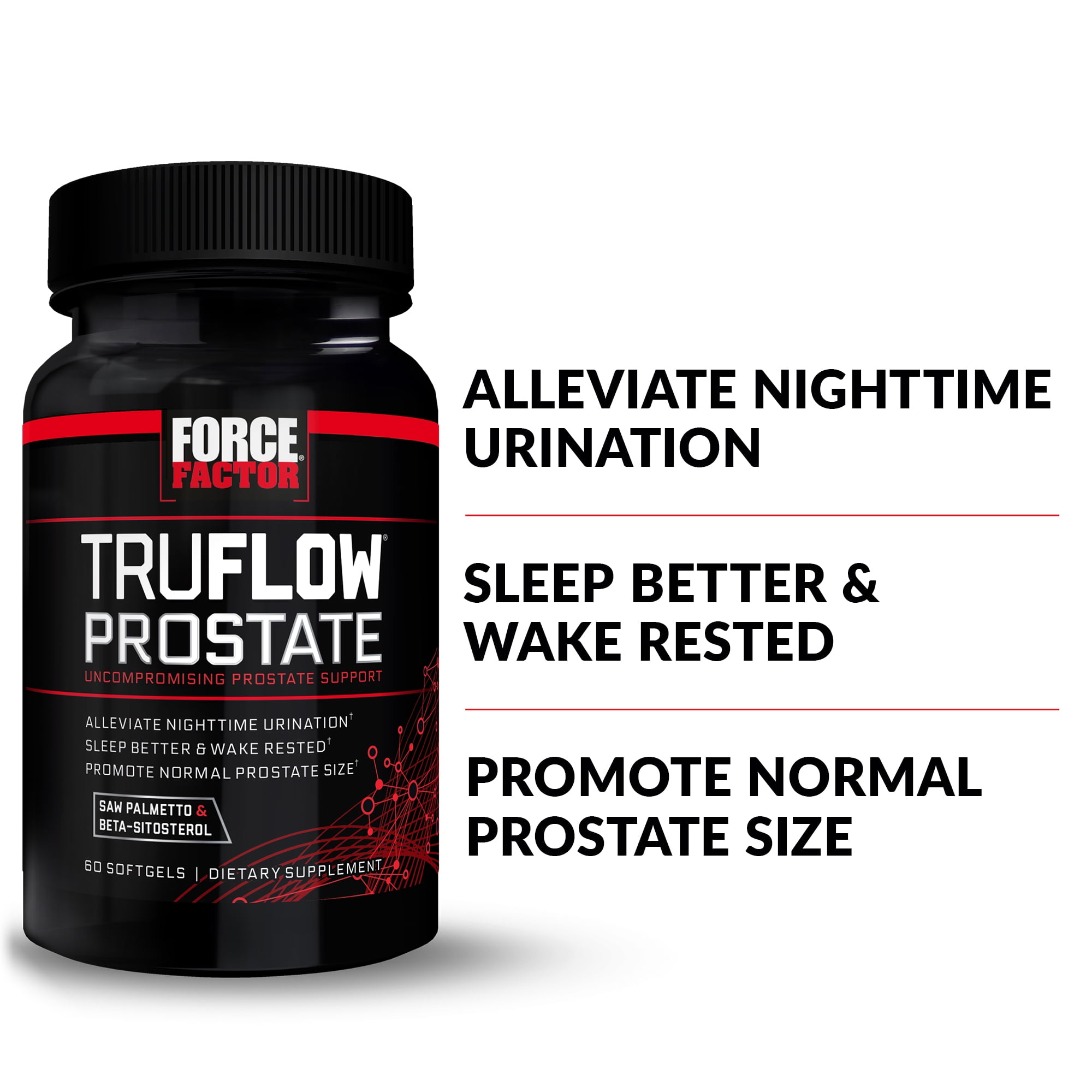 TruFlow Prostate Health Support Supplement for Men with Beta Sitosterol, Saw Palmetto, and Melatonin to Improve Urinary Flow, Promote Sleep, Support Normal Prostate Size, Force Factor, 60 Softgels