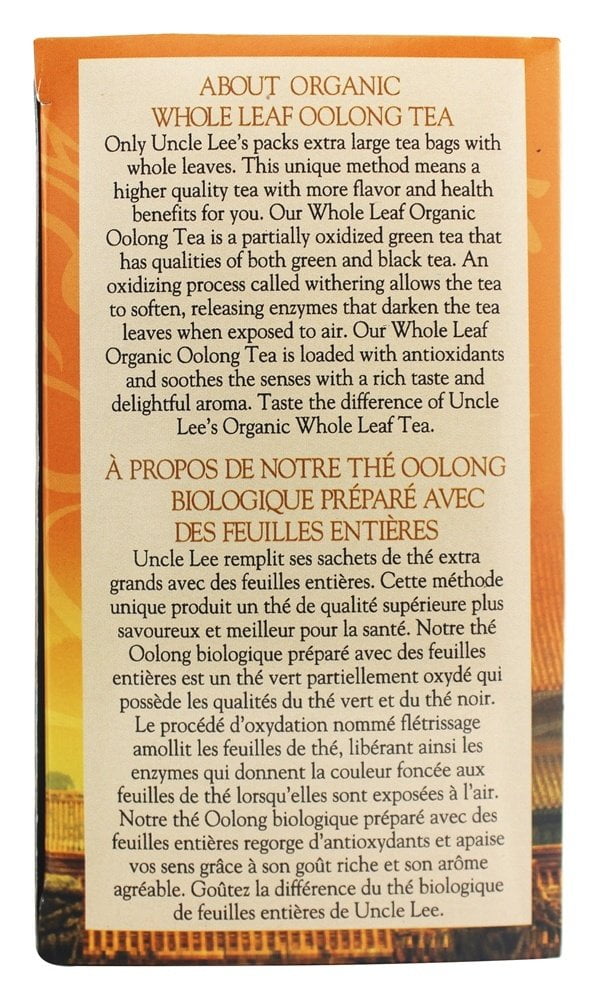 Introducing Our New Line Of Teas – Imperial Organic. What Does Imperial Mean? It Means Royal Quality Of Organic Degree In Teas Available Today. Our Oolong Tea (Camellia Sinensis) Is A Partially Oxidized Green Tea That Has Qualities Of Both Green And Black Tea. Packed With Antioxidants, Oolong Tea Is Rich And Robust In Flavor. Certified Organic And Kosher, Every Batch Is Carefully Hand Inspected To Ensure Goodness And Purity. Taste The Uncle Lee’S Difference!Uncle Lee’S Tea 100% Organic Oolong Tea Whole Leaf, 18 Bags