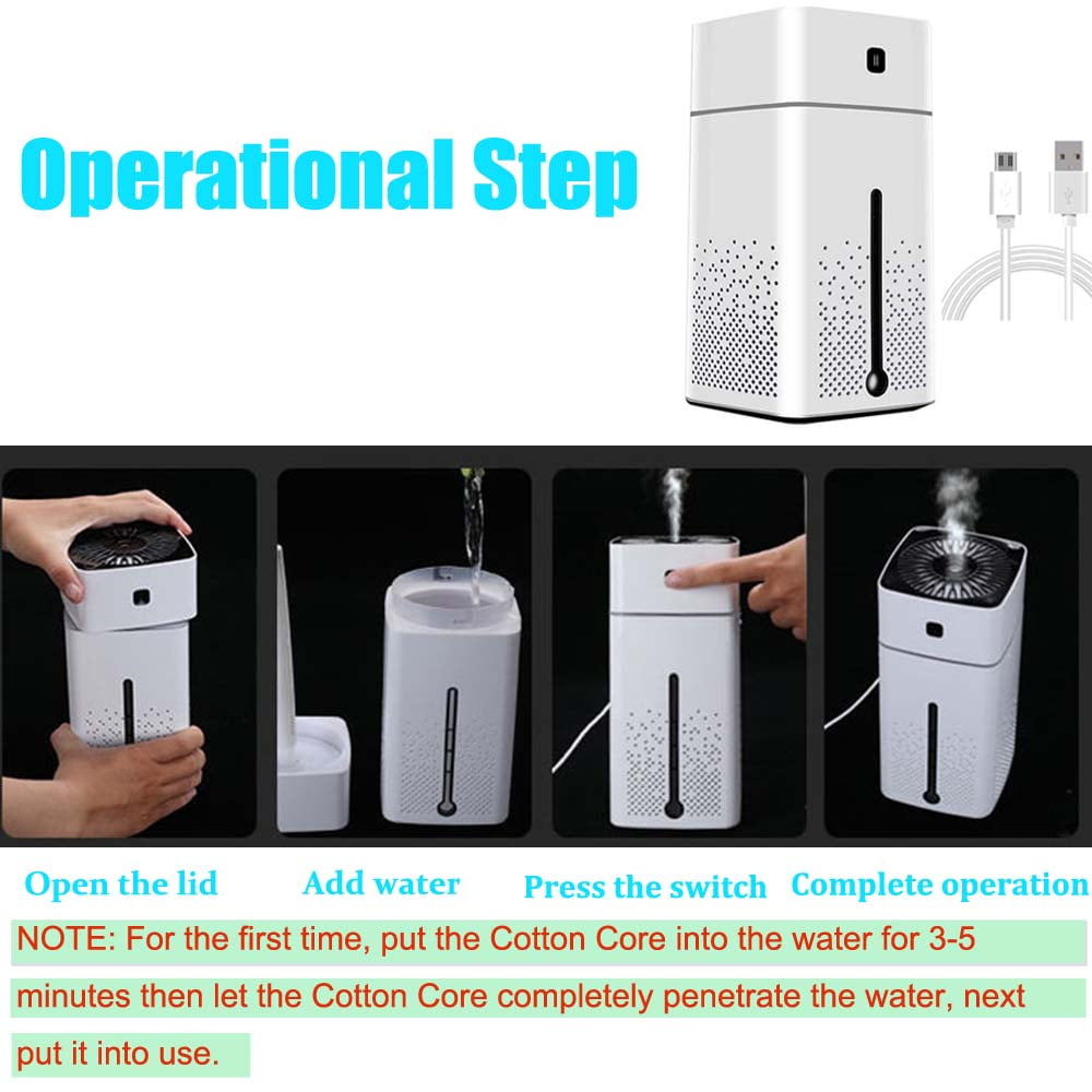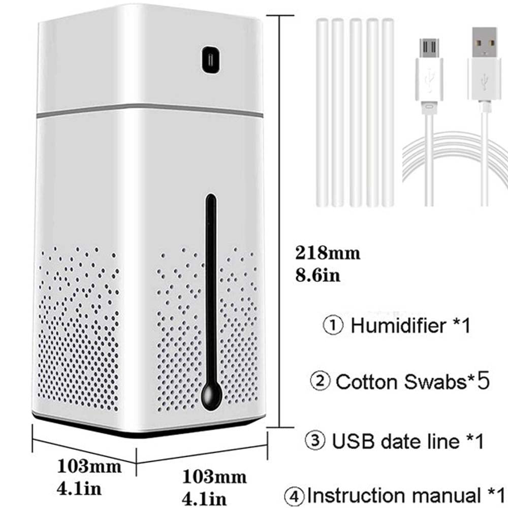 - PORTABLE DESIGN:The size of the humidifier is 103*103*218mm,portable and simple design is easy to carry anywhere,and also suitable for home,car,bedroom,office,baby room and travel