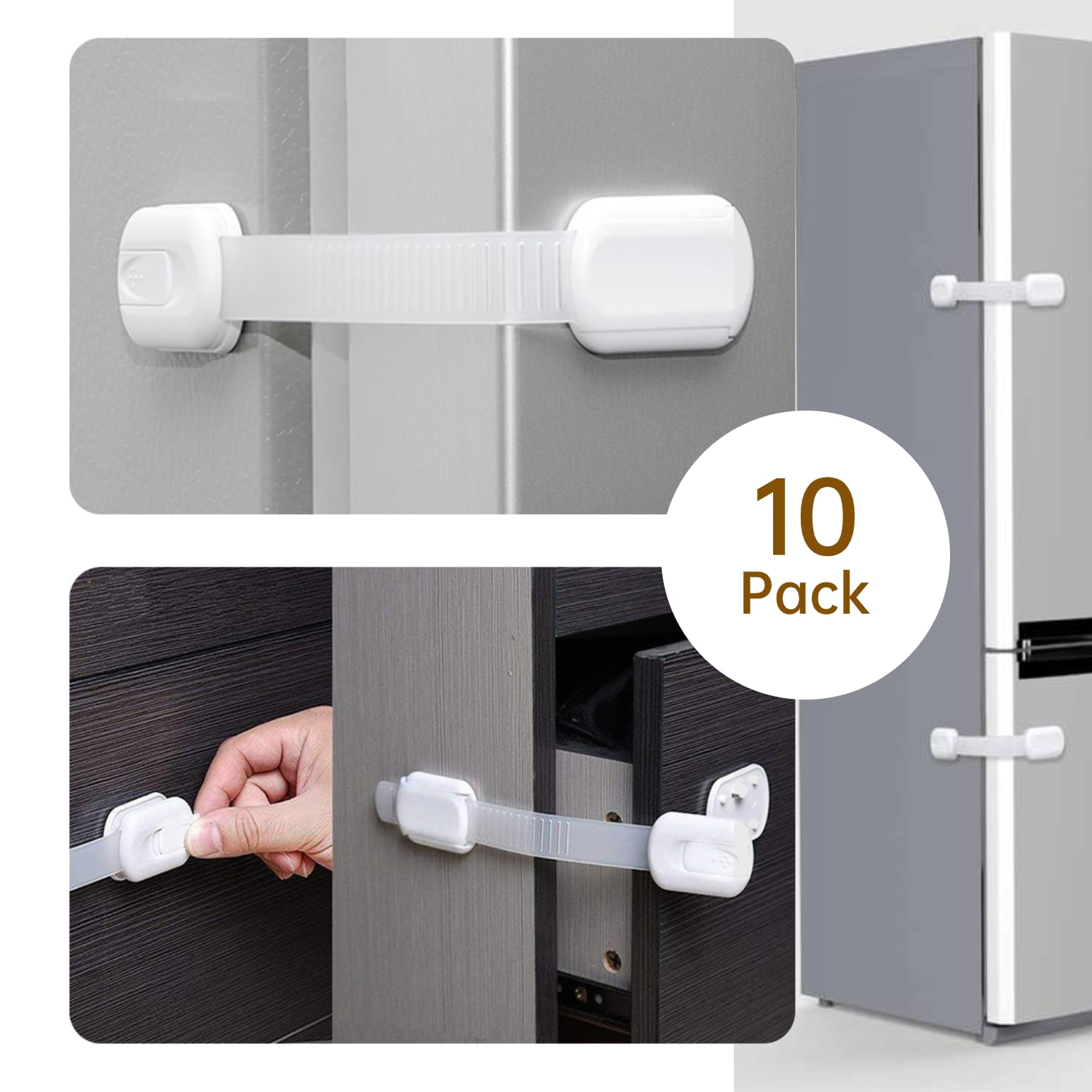 WeGuard Child Safety Locks for Cabinet, Drawer, Refrigerator, Toilet, Oven, White, 10 Pack