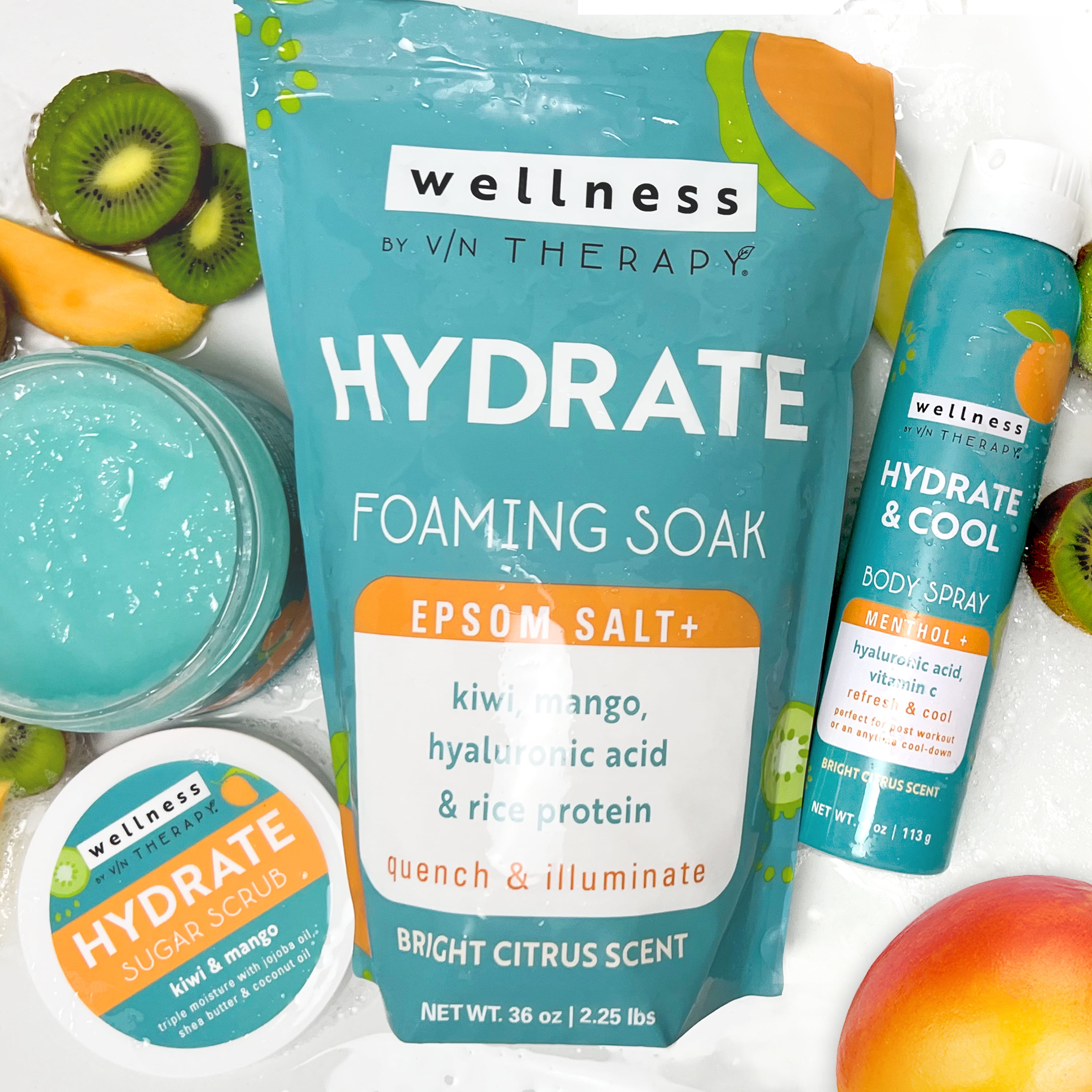 Wellness Hydrate Sugar Scrub is perfect for gently exfoliating, illuminating, and nourishing your skin. Formulated with an array of moisturizing ingredients, this body scrub blends kiwi and mango fruit extracts with hyaluronic acid to provide you with blissful skin rejuvenation. Kiwi helps hydrate and brighten your skin’s appearance, mango helps support an even, glowing skin complexion, and hyaluronic acid helps maintain skin moisture and improve its texture. The sugar body scrub also contains jojoba oil, shea butter, and coconut oil, which help hydrate skin and promote a natural radiance. This skin scrub is gluten-free, cruelty-free, paraben-free, MEA-free, DEA-free, and TEA-free. Show your skin some love by massaging this sugar scrub in a circular motion, especially on dry areas, and then rinse well. Go about your day being your happy, best self with the Wellness Hydrate Sugar Scrub.