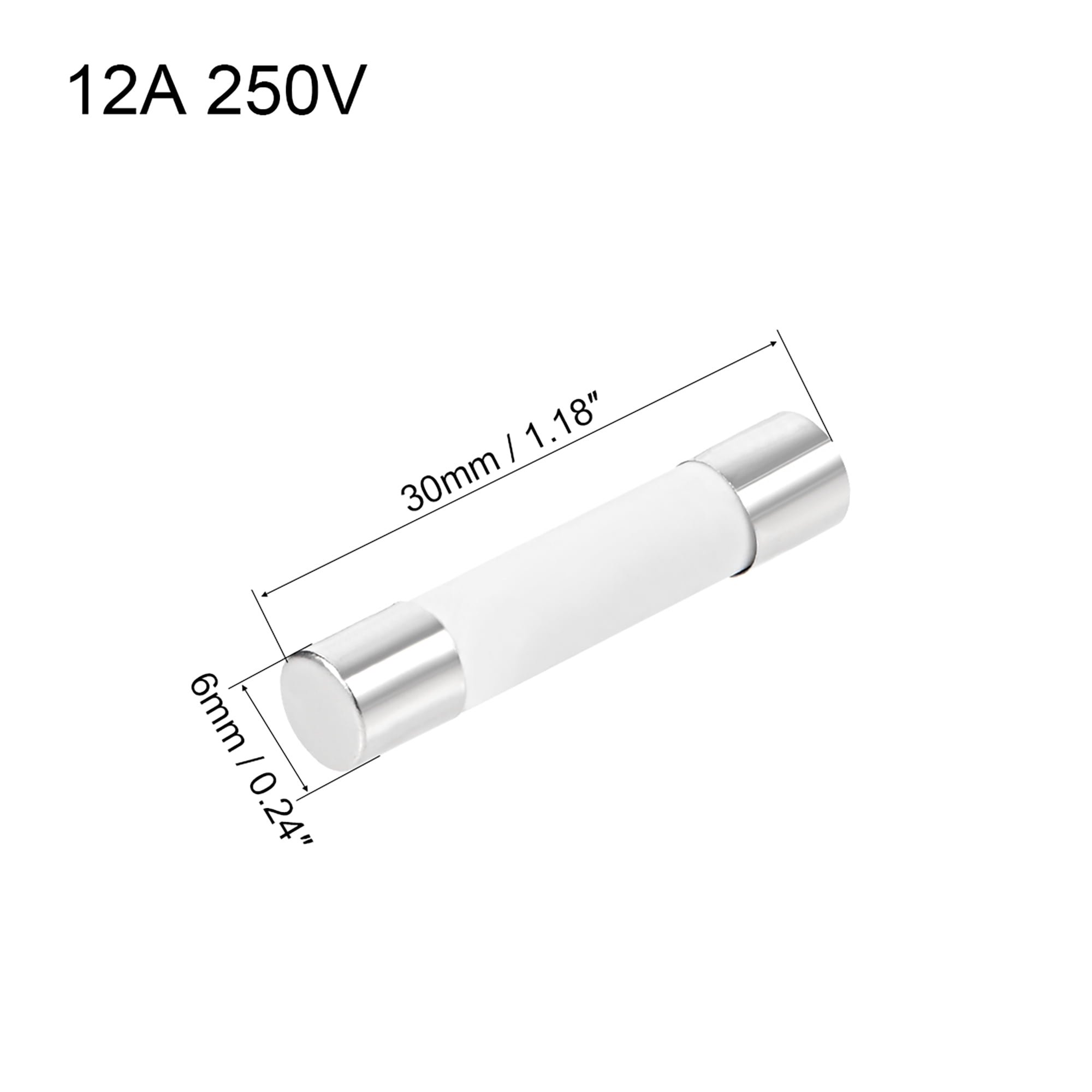 Automotive Cartridge Fuses 12A 250V 6x30mm Ceramic Fast Blow Replacement 6Pcs