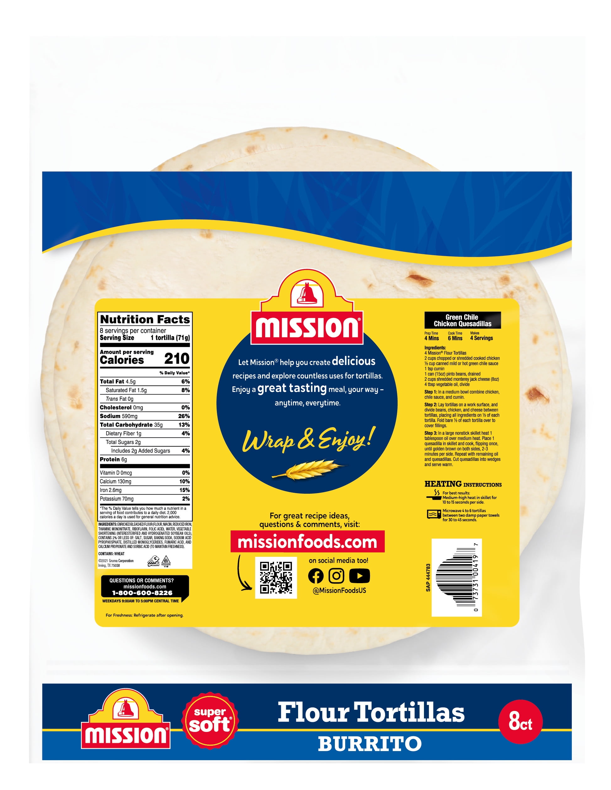 Mission Super Soft Burrito Large Flour Tortillas, 20 oz, 8 Count