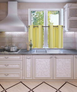 1SET D2 YELLOW Solid Linen Grommet Treatment Traditional Curtains for Short Windows, Livingroom, Bathroom, Kitchen, Nursery Two (2) Piece Faux Silk Blackout Tier Panels 30′ Wide x 24′ Length Each