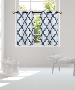 2-Piece Moza Hunter Green/White Geometric Blackout Lined Grommet Window Curtain Set, Two (2) Small Printed Panels 30′ Wide X 36′ Length (Each)