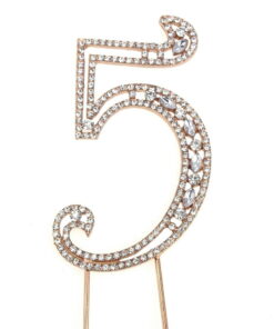 Metal Number Rhinestone Cake Topper, Gold, 3-3/4-Inch, Number 5