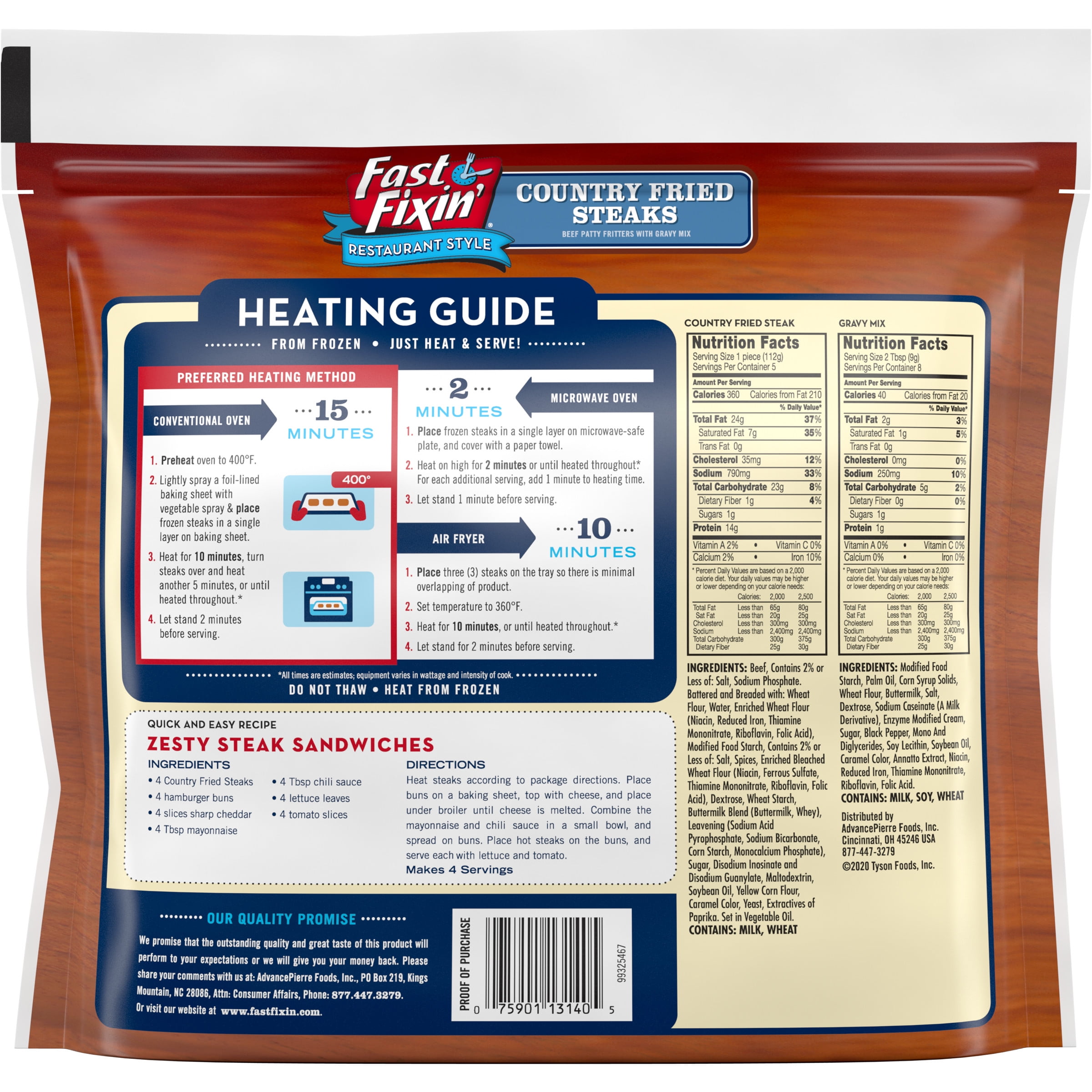 Fast Fixin’ Restaurant Style Country Fried Steak with Gravy, 1.4 lb Bag (Frozen)
