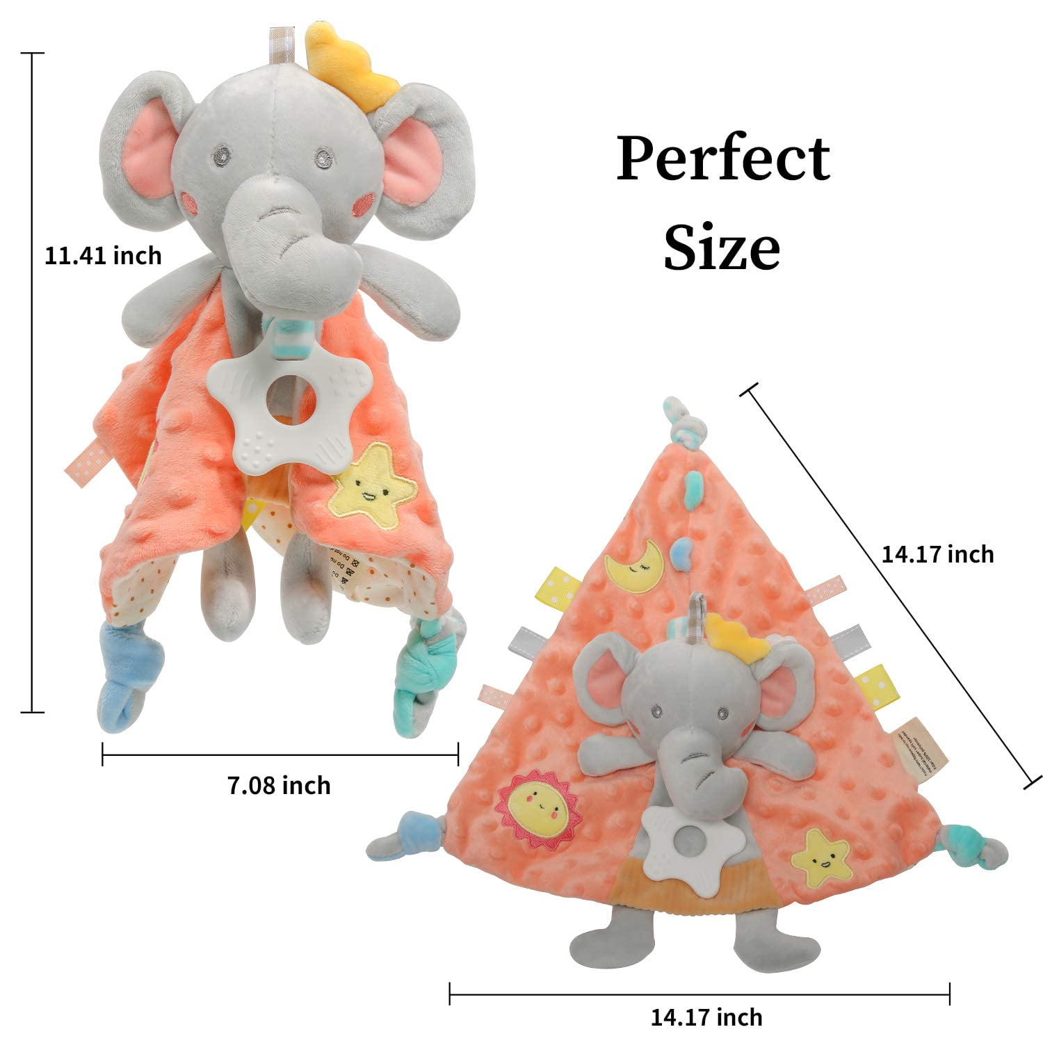 Amerteer Baby Taggies Blanket, Security Blanket for Boys Girls , Elephant Loveys for Newborn, Minky Dot Comfort Towel with Tags, Snuggle Blanket, Lovey Gift for Infant Toddler, Soft Comfortable