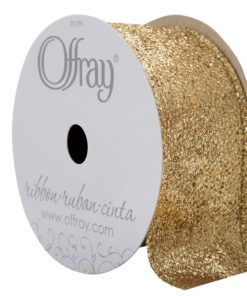 Offray Ribbon, Gold 1 1/2 inch Wired Edge Metallic Ribbon, 9 feet