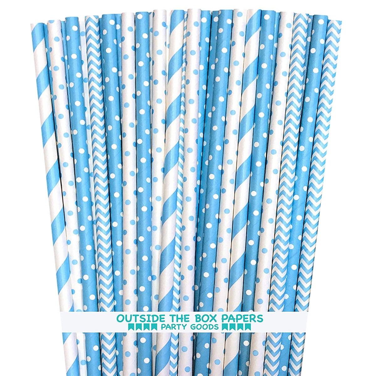 100 Light Blue Stripe, Chevron and Polka Dot Paper Straws