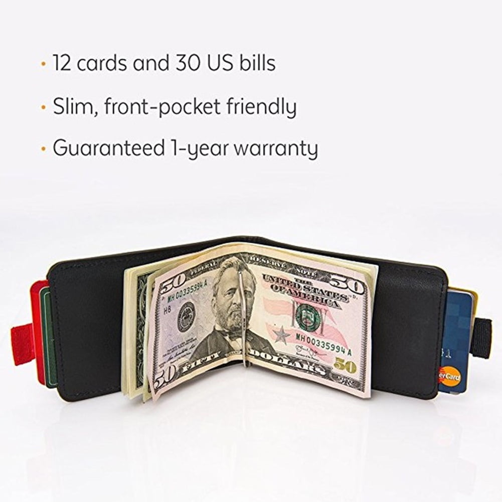 2. Ultra-thin pull-tab design: This modern wallet barely creates bulges in the tightest back pockets, and 2 tabs on the front and back of the wallet allow you to pull out the card without opening the entire wallet