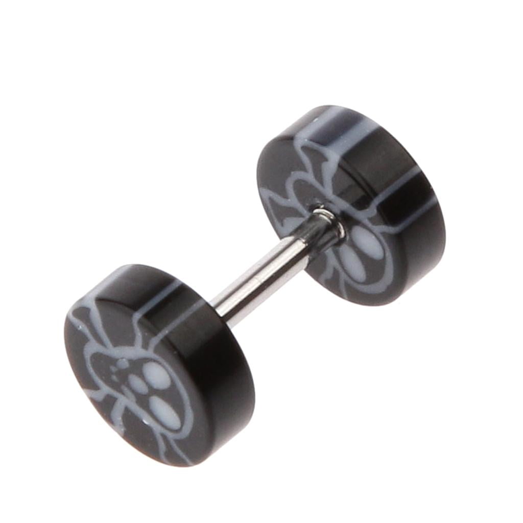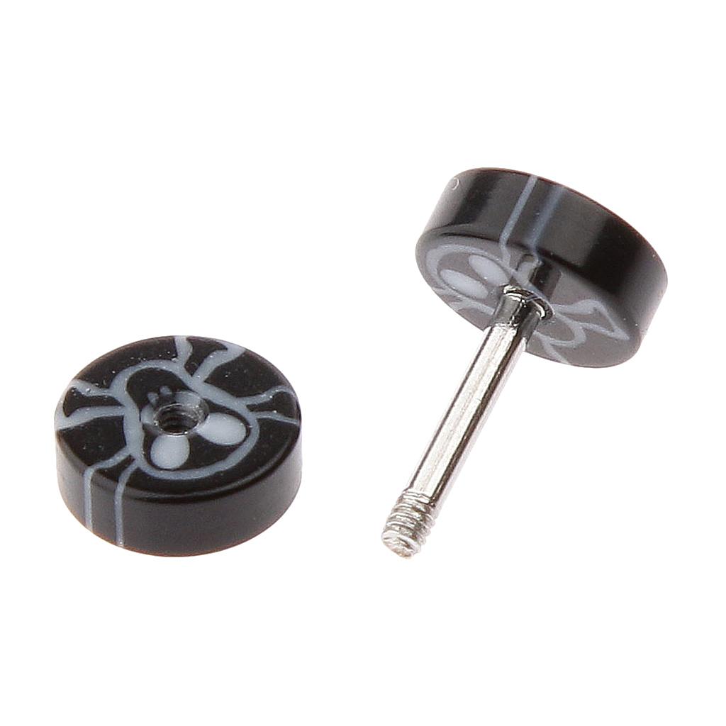 Punk Goth cheater ear plugs earrings in tai chi, skull, , maple leaf, black and white respective pairs