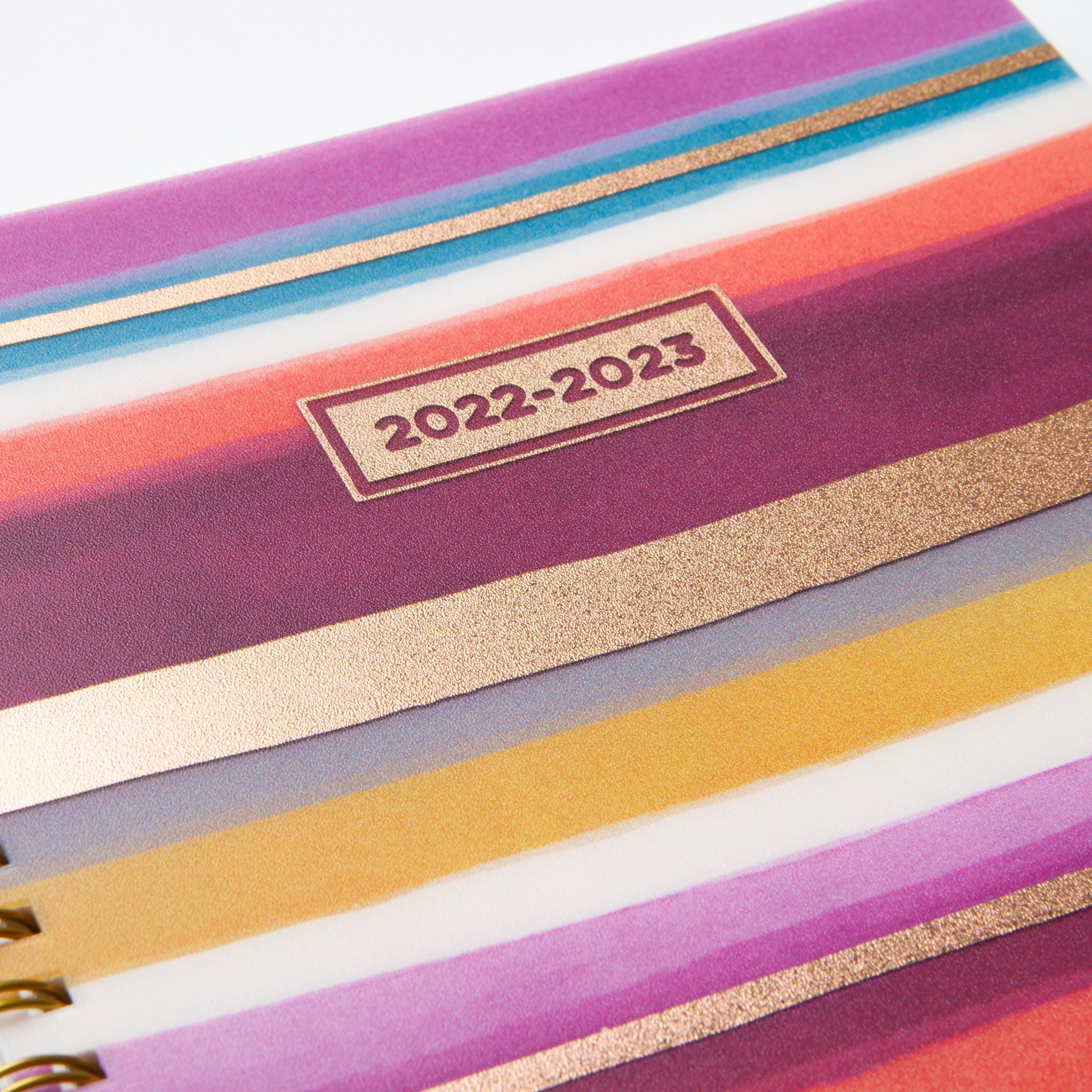 Plan your week, month or year and keep all important activities noted with the Mintgreen 2022/2023 Weekly Monthly Planner. This planner has a poly cover with gold foil stamping and spiral binding. The pages are printed with soy-based ink and are made from 60% recycled FSC certified paper, making it eco-friendly. The color-coded pages for each month make it easy to flip to the date you need. This planner also has space to write important dates like birthdays, contacts, and plenty of room in the back to jot down extra notes. The planner is dated July 2022-June 2023. Keeping your schedule organized is easy with this Mintgreen Medium 6×8 Jewel Stripe Spiral Planner!