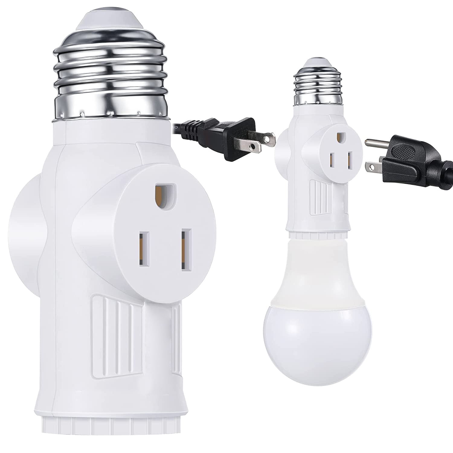 3 Prong Light Socket Adapter, E26 Light Bulb Outlet Adapter, Polarized Light Socket to Plug Adapter,2/3 Prong Outlet Plug Splitter Converter for Garage Porch CCTV Camera,2 Pack