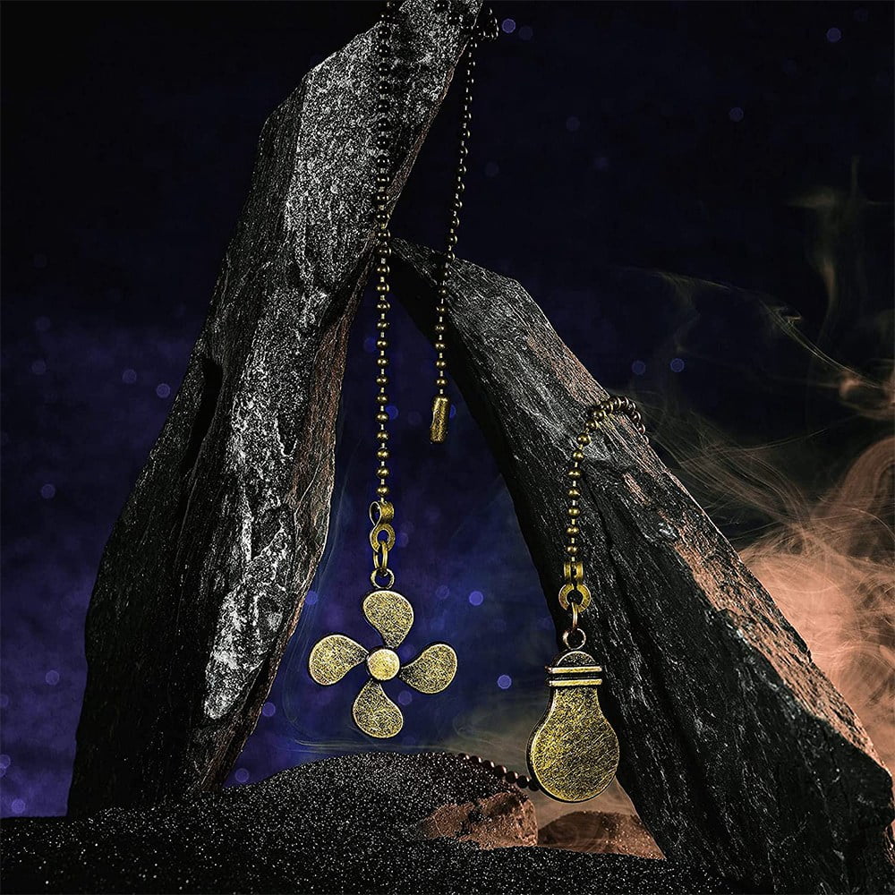 4Pcs Ceiling Fan Pull Chain Set,Bulb and Fan Pattern Pull Chain Extension Fan Pull Chain Pendant 12 Inch(Antique Bronze)
