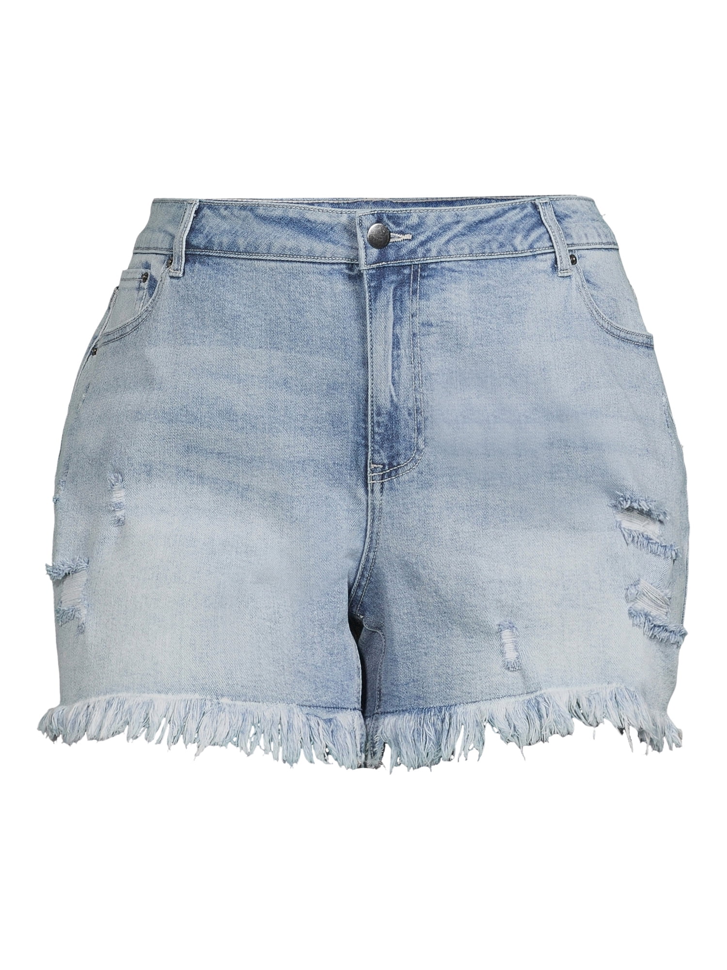 Alivia Ford Women’s Plus Size Destructed Fray Hem 5′ Jean Shorts