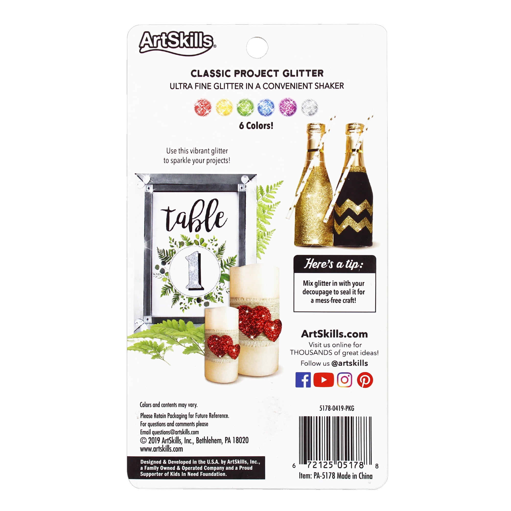 - Each Glitter Shaker contains .19oz of Glitter