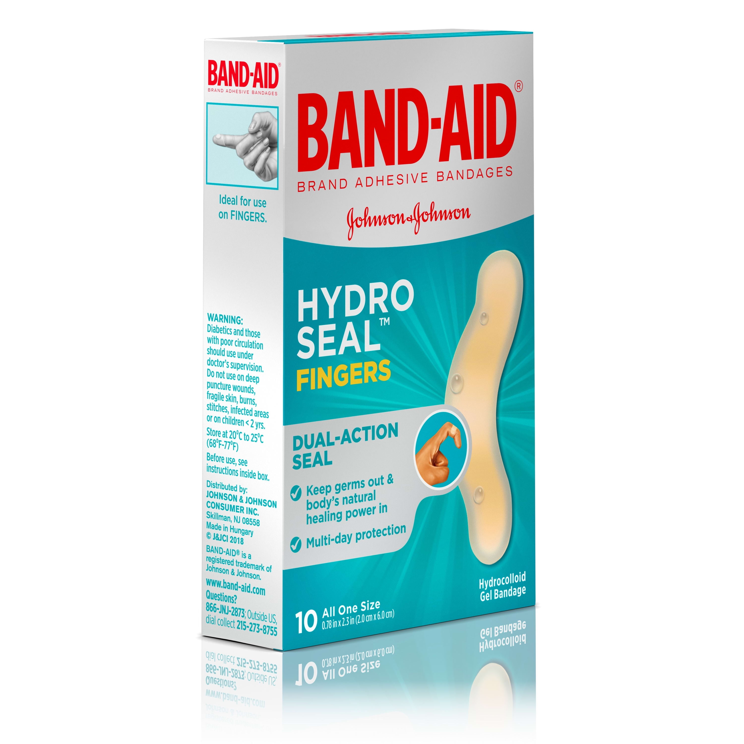Band-Aid Brand Hydro Seal Bandages Fingers help keep germs out and your body’s natural healing power in. Within 24 hours of application, a white bubble will form under the bandage to show that the healing process has begun. These waterproof bandages provide advanced wound care and cushion to help protect blisters. Ideal for use on fingers, the adhesive bandages deliver multiday protection and stay on even through hand washing and showers. Band-Aid Brand Hydro Seal Bandages Fingers are sterile and not made with natural rubber latex. This package contains 10 individually wrapped finger bandages, each measuring 0.78 by 2.3 inches.