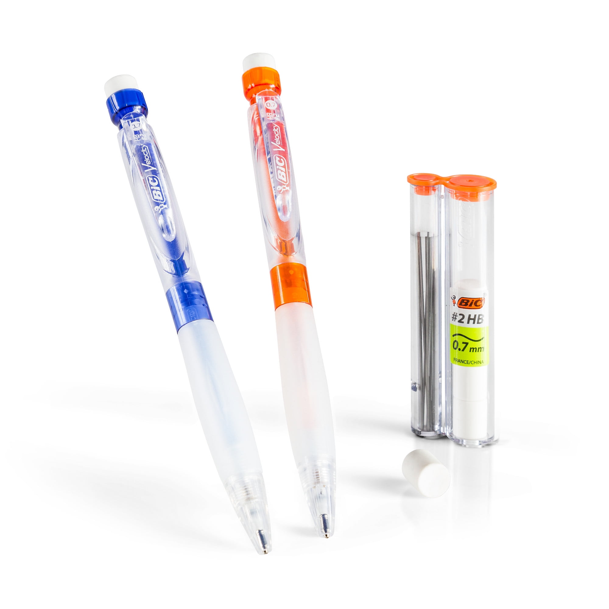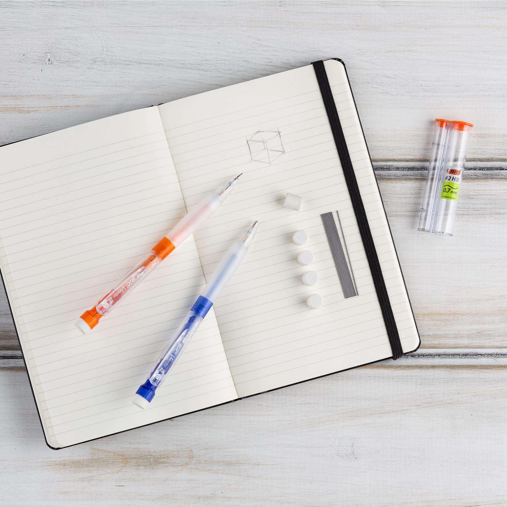 Write comfortably and smoothly with BIC Velocity Max Mechanical Pencils. Featuring a large eraser, these versatile pencils offer extra erasing power to help you keep your tests, notes, and compositions tidy. They come with strong, smooth #2 lead that creates strikingly dark marks and feature a large round barrel that can hold up to 12 pieces of lead. And thanks to their soft gel grip, these pencils help ensure comfort during sustained writing sessions.