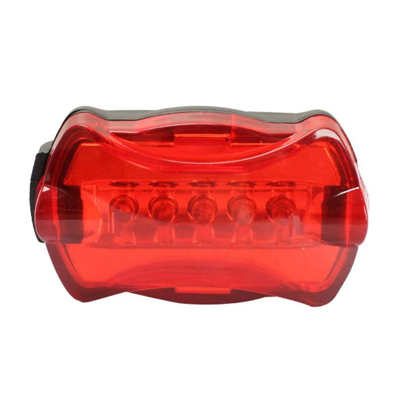 New bicycle 5-LED tail light with mounting bracket. This red back light contains 5 bright low power LEDs with 6 flashing modes and is powered by 2x AAA batteries. (1) Bike Tail Light 5-LED Red Safety Back Rear Flashing 6-Modes AAA Battery Powered. Super bright leds. Easy to install and remove. Quick release bracket. 6 LED flashing modes, fast detachable type, anti-shock and waterproof. Flashing Modes: Full bright/full slow flash/full quick flash/left to right/right to left/middle to two sides. Powered by: 2x AAA battery (not included). Dimensions: 2.5" x 1.5" x 1.2" (L x W x T).