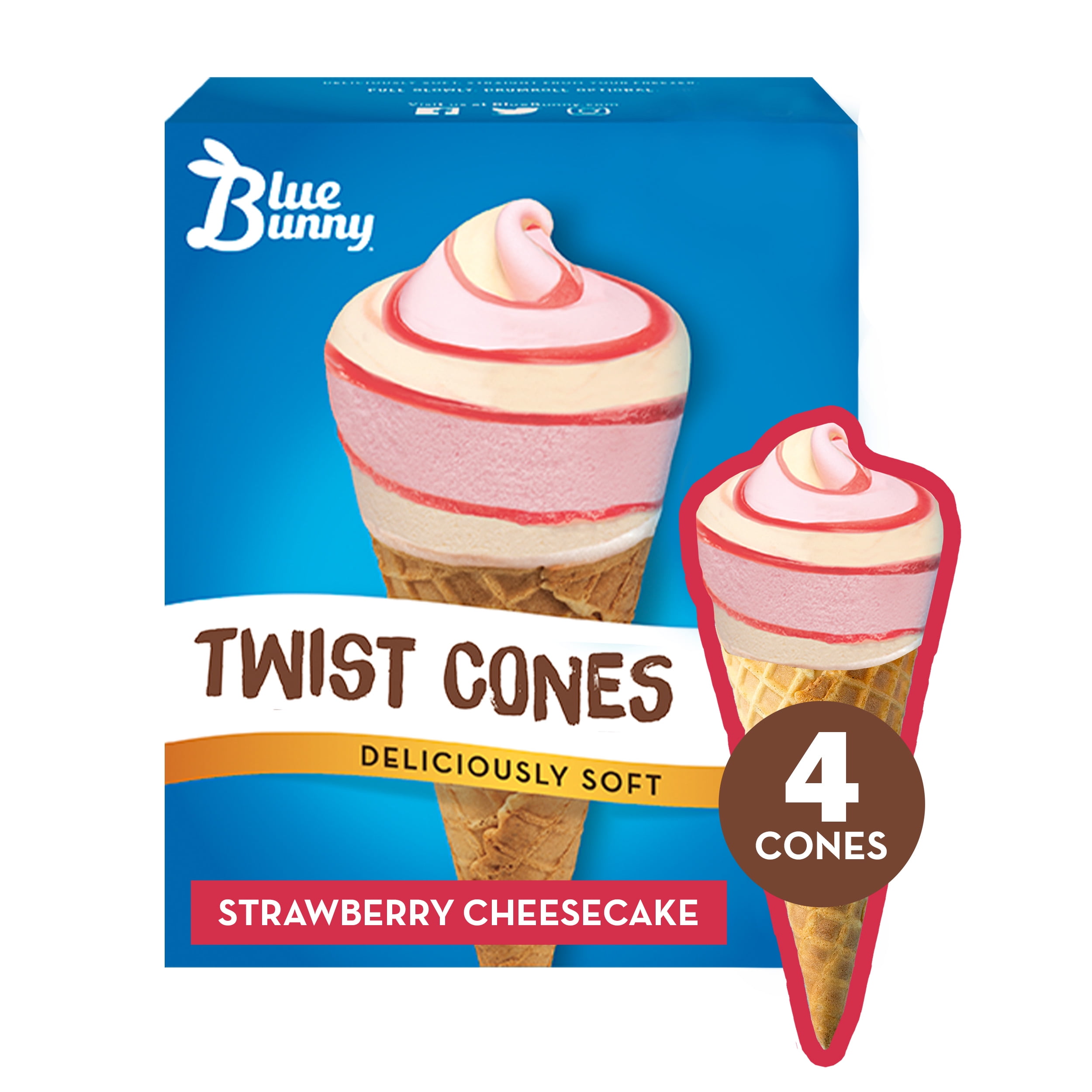 Blue Bunny Strawberry Cheesecake Twist Cones, Frozen Dessert, 4 Pack