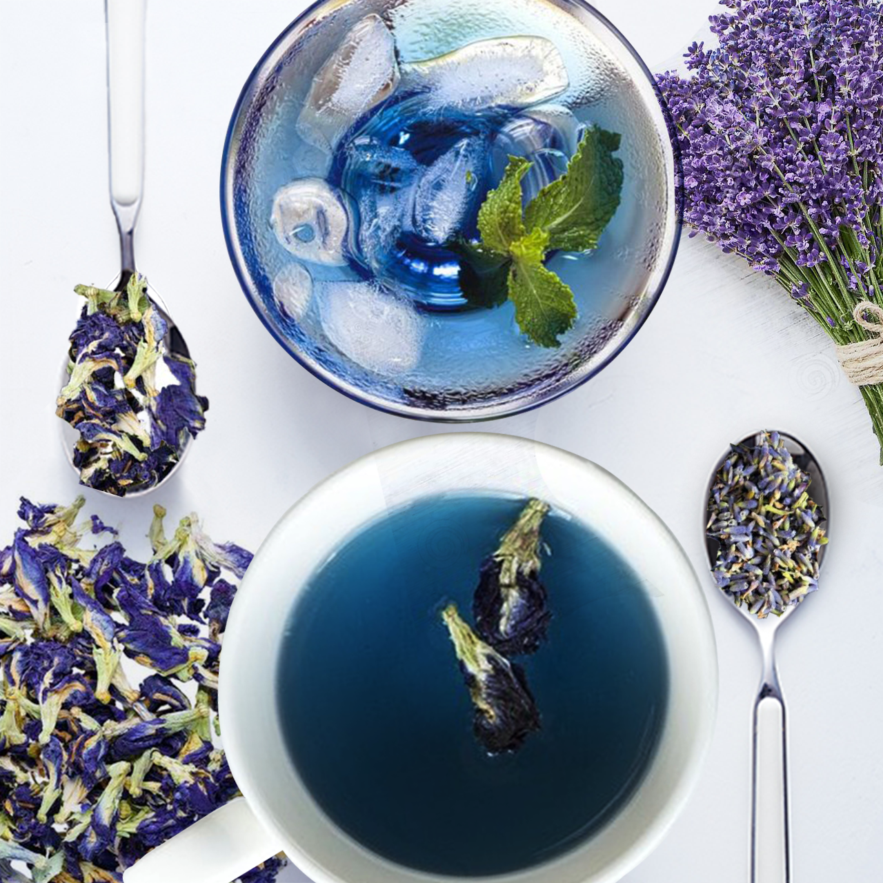 USA Listing changes USA Listing changes 100% 10 D61 Blue Tea provides a butterfly pea flower lavender zero caffeine with high on anti-oxidant tea. Healthy and natural blend of Butterfly Pea Flower and Kashmiri Lavender. Dedicated to reducing the aging of cells, repair old cells with high antioxidants. The plant name is Clitoria Ternatea whereas the common name is Butterfly Pea (South Asian Variety – for highest nutrient content and blue color). In Ayurveda, Butterfly Pea Flower is known as a brain tonic to promote intellect and improve memory. It has an amazing intense blue color and has an all-natural earth taste, no bitterness. Used worldwide in Iced Tea, Cocktails and Mocktails. It can be consumed as a hot tea or can be paired with lemonade or other cold brews. It is a natural colorant for food items like rice, cakes, etc. it has properties that nourish hair follicles, promote hair growth, prevent greying of hair and reduces hair fall. It is also full of antioxidants and has properties that reverse the damage caused to the skin by sugar molecules which causes skin aging. Screen reader support enabled. Blue Tea provides a butterfly pea flower lavender zero caffeine with high on anti-oxidant tea. Healthy and natural blend of Butterfly Pea Flower and Kashmiri Lavender. Dedicated to reducing the aging of cells, repair old cells with high antioxidants. The plant name is Clitoria Ternatea whereas the common name is Butterfly Pea (South Asian Variety – for highest nutrient content and blue color). In Ayurveda, Butterfly Pea Flower is known as a brain tonic to promote intellect and improve memory. It has an amazing intense blue color and has an all-natural earth taste, no bitterness. Used worldwide in Iced Tea, Cocktails and Mocktails. It can be consumed as a hot tea or can be paired with lemonade or other cold brews. It is a natural vegan colorant for food items like rice, cakes, etc.