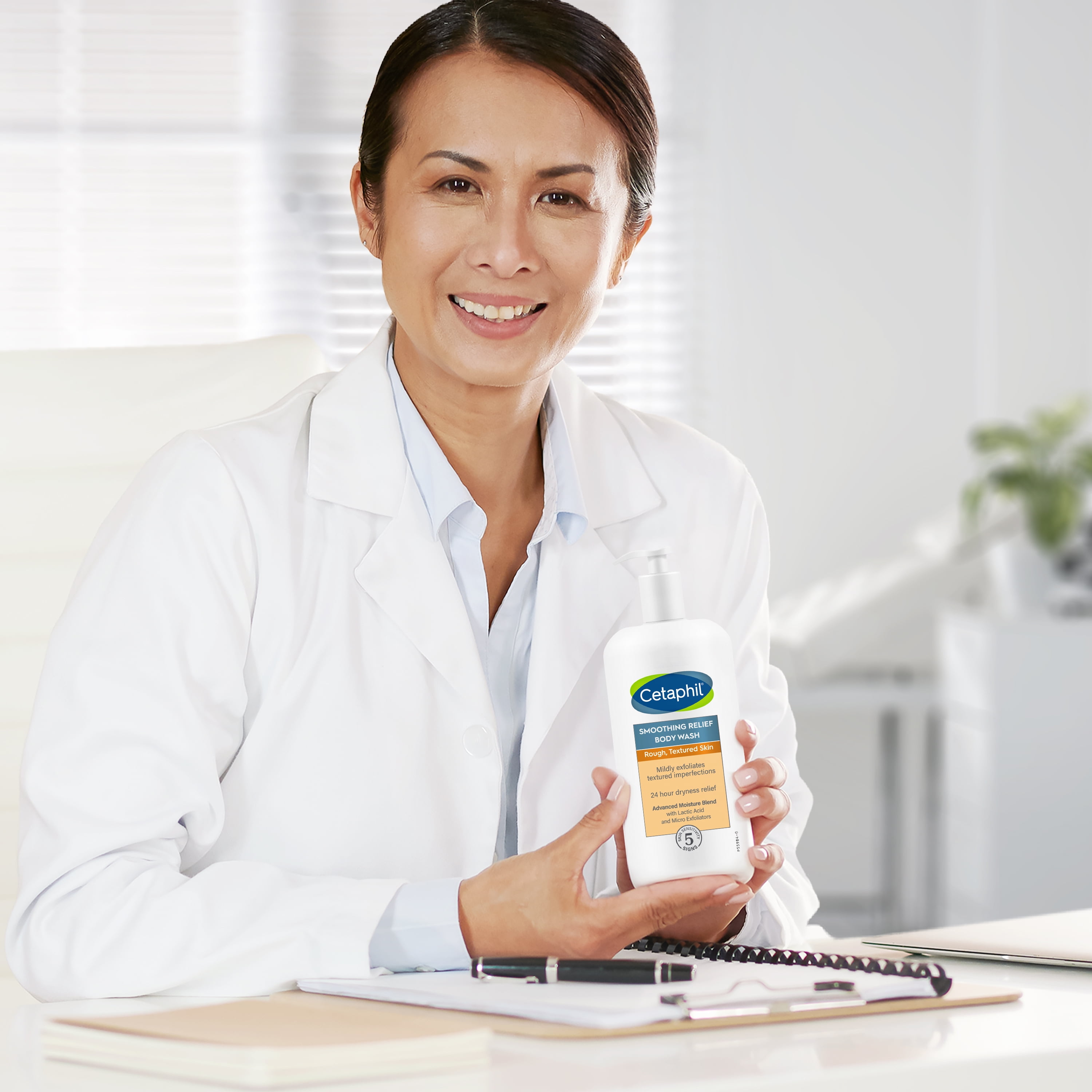 CETAPHIL Smoothing Relief Body Wash is designed to gently cleanse and exfoliate rough, textured skin without drying out the skin’s moisture barrier, leaving you with softer and smoother looking skin. Formulated with an Advanced Moisture Blend made up of glycerin, shea butter and soybean oil to provide 24 hour relief from dryness. This gentle body wash contains lactic acid and natural biodegradable micro exfoliants made from sunflower wax to exfoliate textured imperfections and rough skin. Dermatologist tested and specifically formulated for sensitive skin, CETAPHIL Smoothing Relief Body Wash is hypoallergenic, fragrance, paraben and sulfate free.