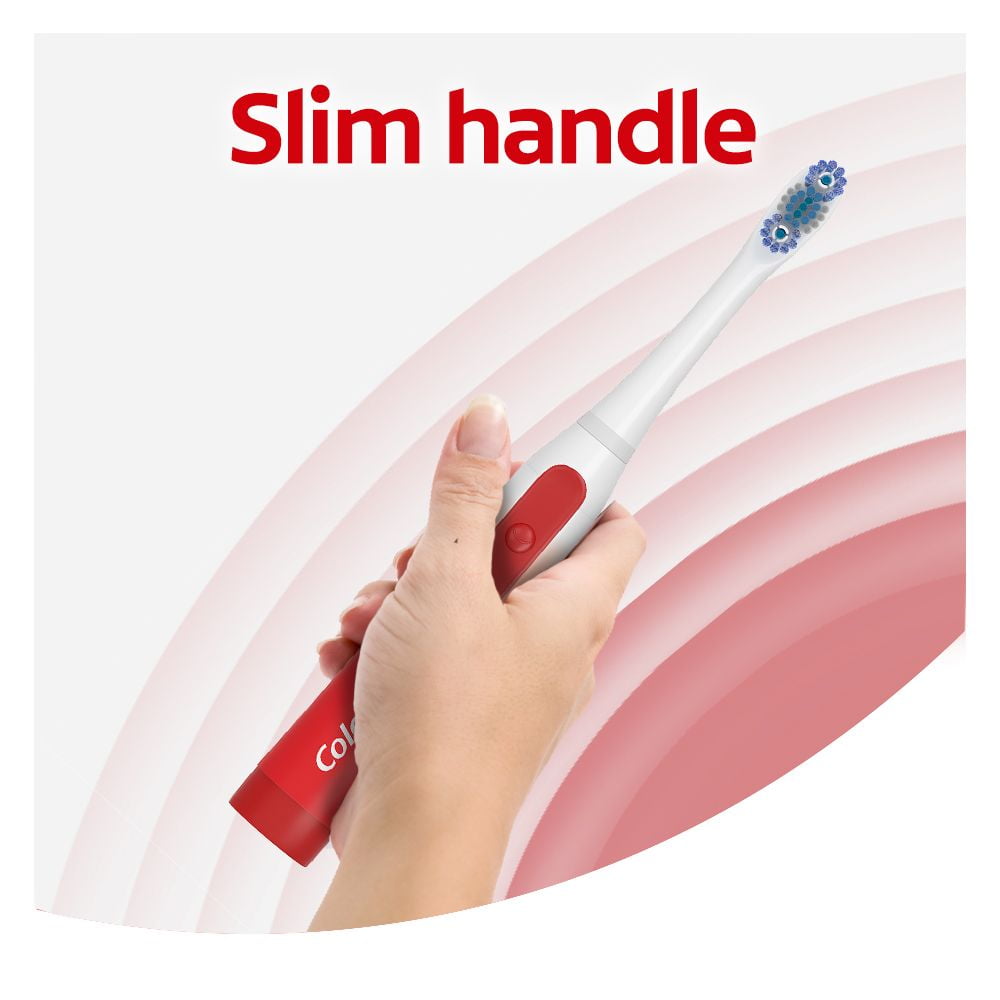 The Colgate 360 Optic White sonic powered toothbrush removes more stains** for a bright smile. The ultra slim, lightweight handle design provides sonic vibrations of 20,000 strokes per minute. The compact brush head includes Floss Tip* bristles and polishing cups to remove surface stains, and a cheek & tongue cleaner that removes odor-causing bacteria. **vs. a regular flat trim manual toothbrush *does not replace flossing At Colgate, we make products that promote healthy smiles. Not only because having a healthy smile is important to your overall health, but because when you have a healthy smile, you actually smile more – and that’s a powerful thing. Smiles are the simplest form of optimism, something we need now more than ever. That’s why we’re championing optimism – we are committed to creating a healthier planet and working every day to create healthy smiles for all. We’ve pioneered bold initiatives around the world that give people access to oral healthcare information and resources so they can put their best smiles forward.