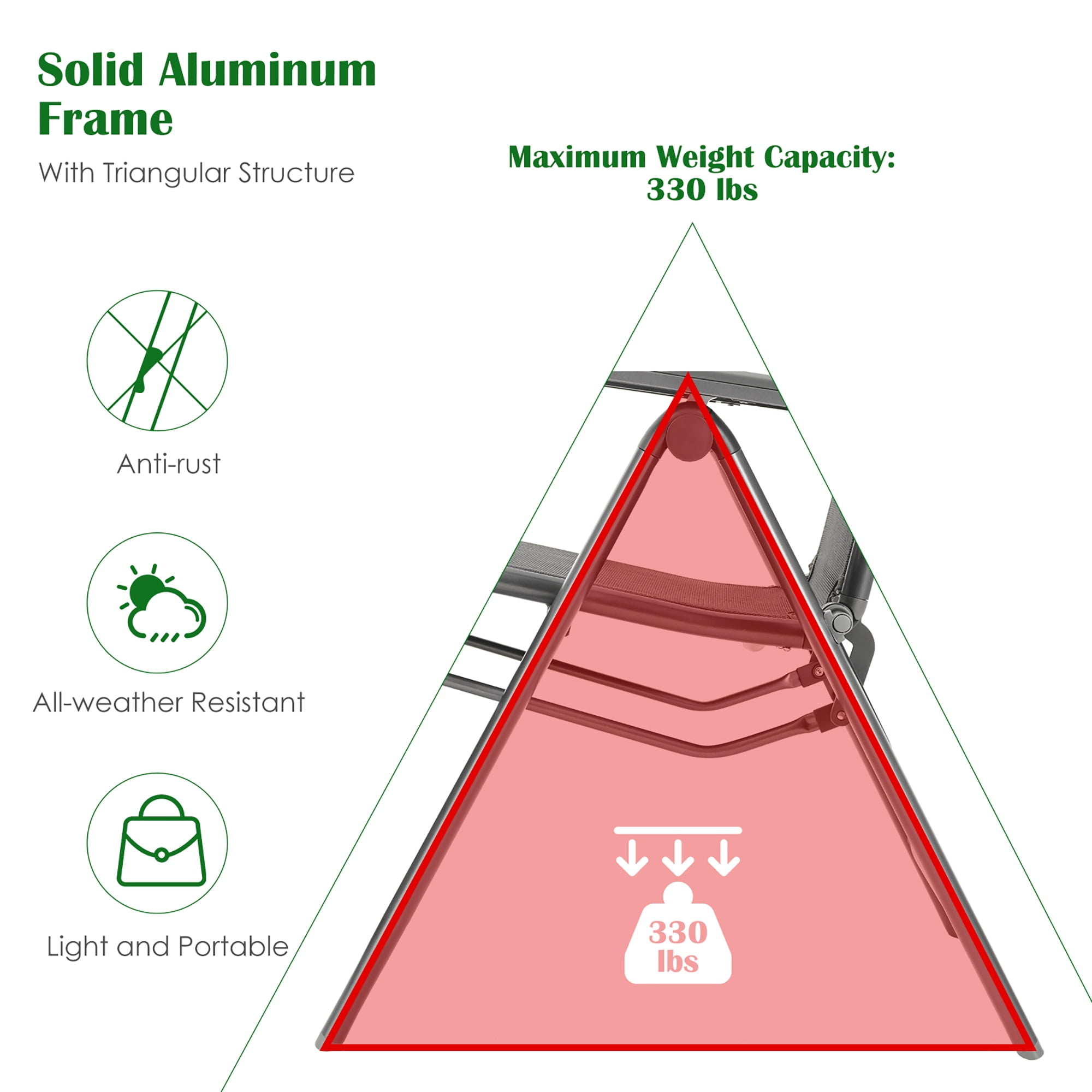 - Premium Material & Sturdy Structure: The seat fabric features high resistance to sunlight, high temperature and fading. And the aluminum frame is made of exquisite quality which is anti-rust and bending resistant, ensuring long-lasting service time. Additionally, the triangular structure adds to a higher stability of the chair.