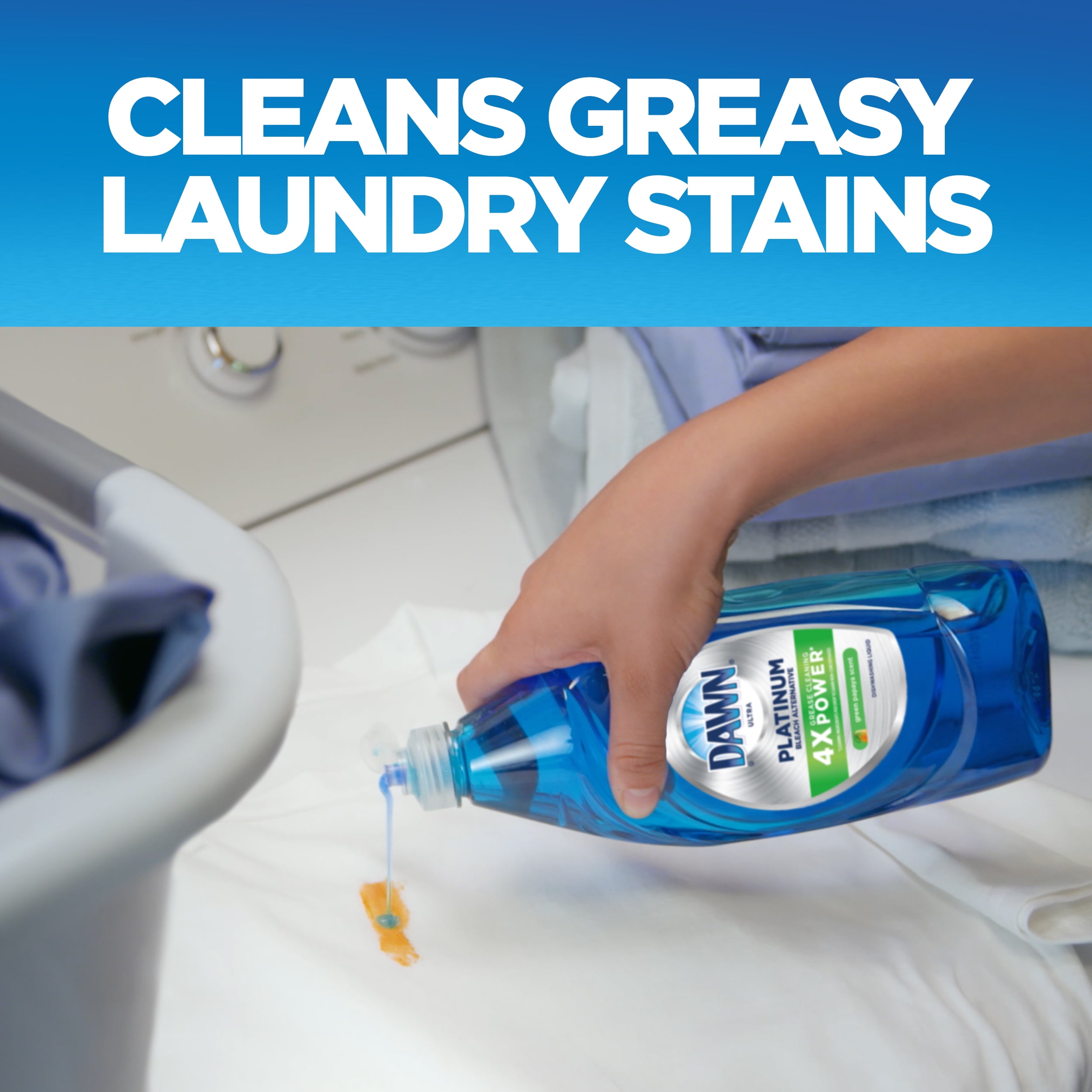 Your toughest everyday messes are no match for Dawn Platinum Bleach Alternative dishwashing liquid dish soap. With 4X the Grease Cleaning Power (based on cleaning ingredients per drop vs. Dawn Non-Concentrated). In just seconds, Dawn Platinum dishwashing liquid dish soap powers away 48 hour stuck on food. Use Dawn dishwashing liquid to remove grease and grime from external car surfaces and the outer shroud of a gas grill.