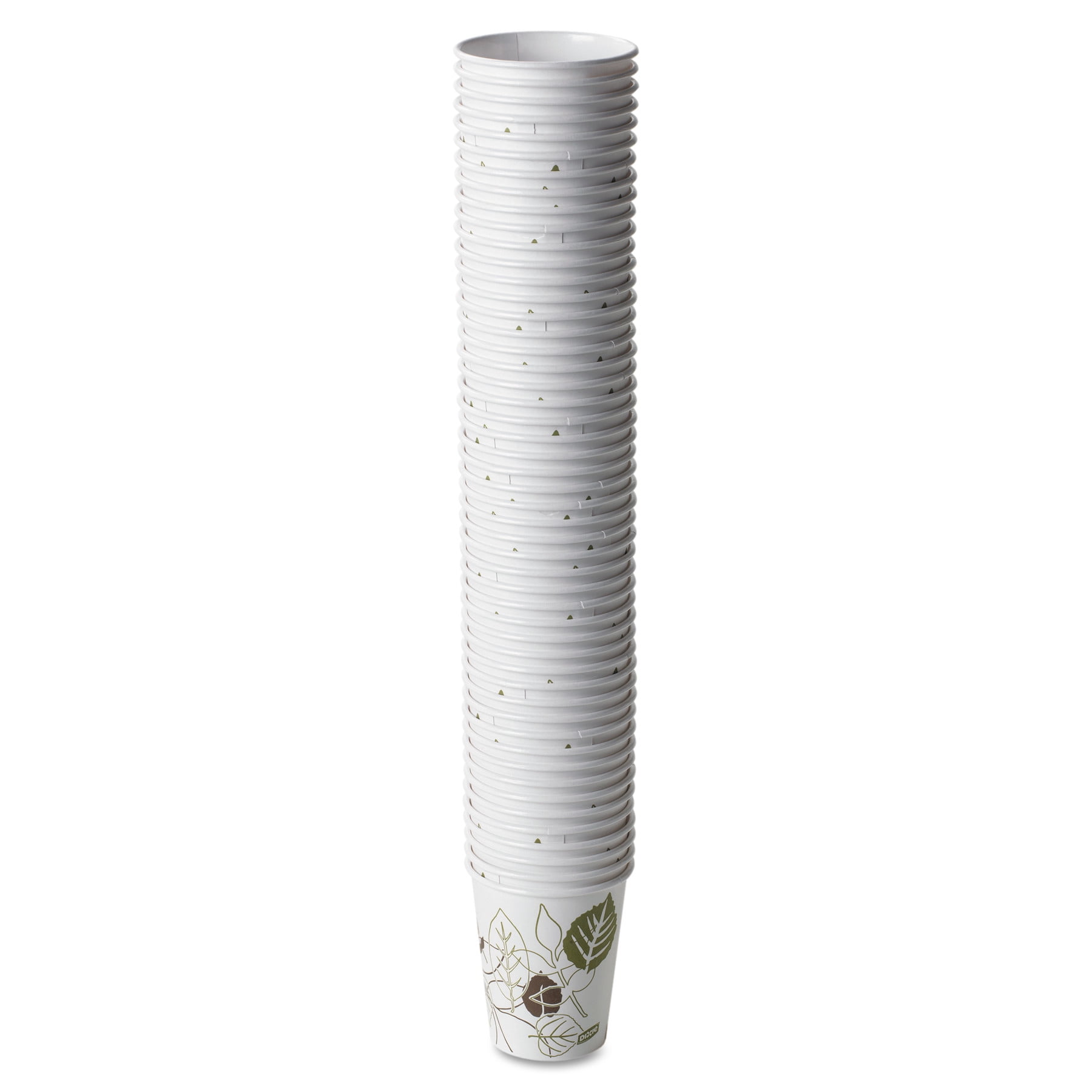 Bring a contemporary look to your hot beverage service with paper cups featuring the eye-catching, Pathways design that is based on nature’s beauty. Cups are ideal for samples and espresso drinks. They are polyline to protect against soak-through and offer durable sidewall strength. Each cup holds 10 oz. Hot cups are compostable in commercial composting facilities. Lids (9540) are sold separately.