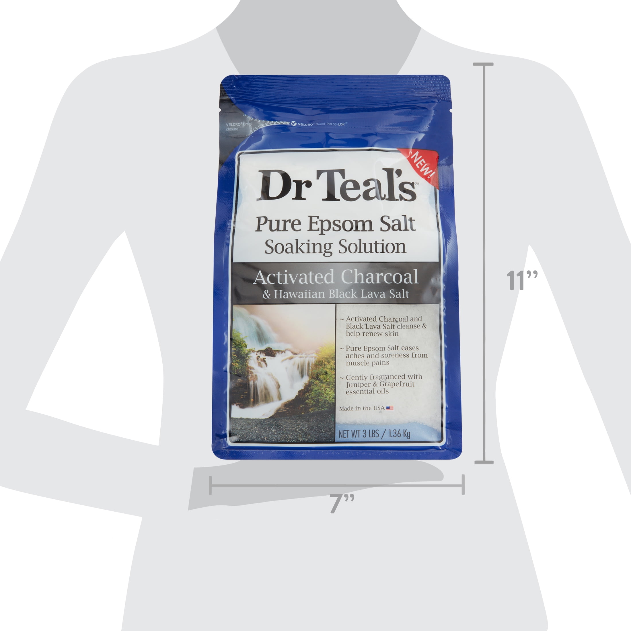 Discover the amazing benefits of Dr Teal’s whole body soaks. Dr Teal’s Activated Charcoal and Hawaiian Black Lava Salt Soaking Solution combines pure Epsom salt that are gently fragranced with Juniper and Grapefruit. Activated charcoal and black lava salt cleanse and help renew skin. Simply add it to your bath or spa and enjoy instant comfort and soothing relief of everyday aches and muscle pains.