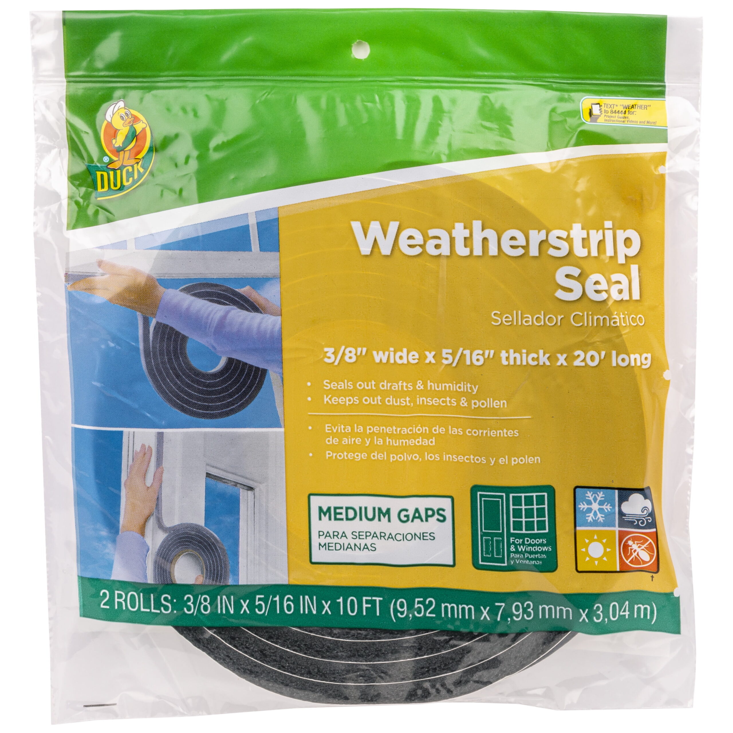 Duck Brand Foam Brown Medium Gap Weatherstrip Door and Window Seal, .38 in. x .31 in. x 10 ft., 2 Pack