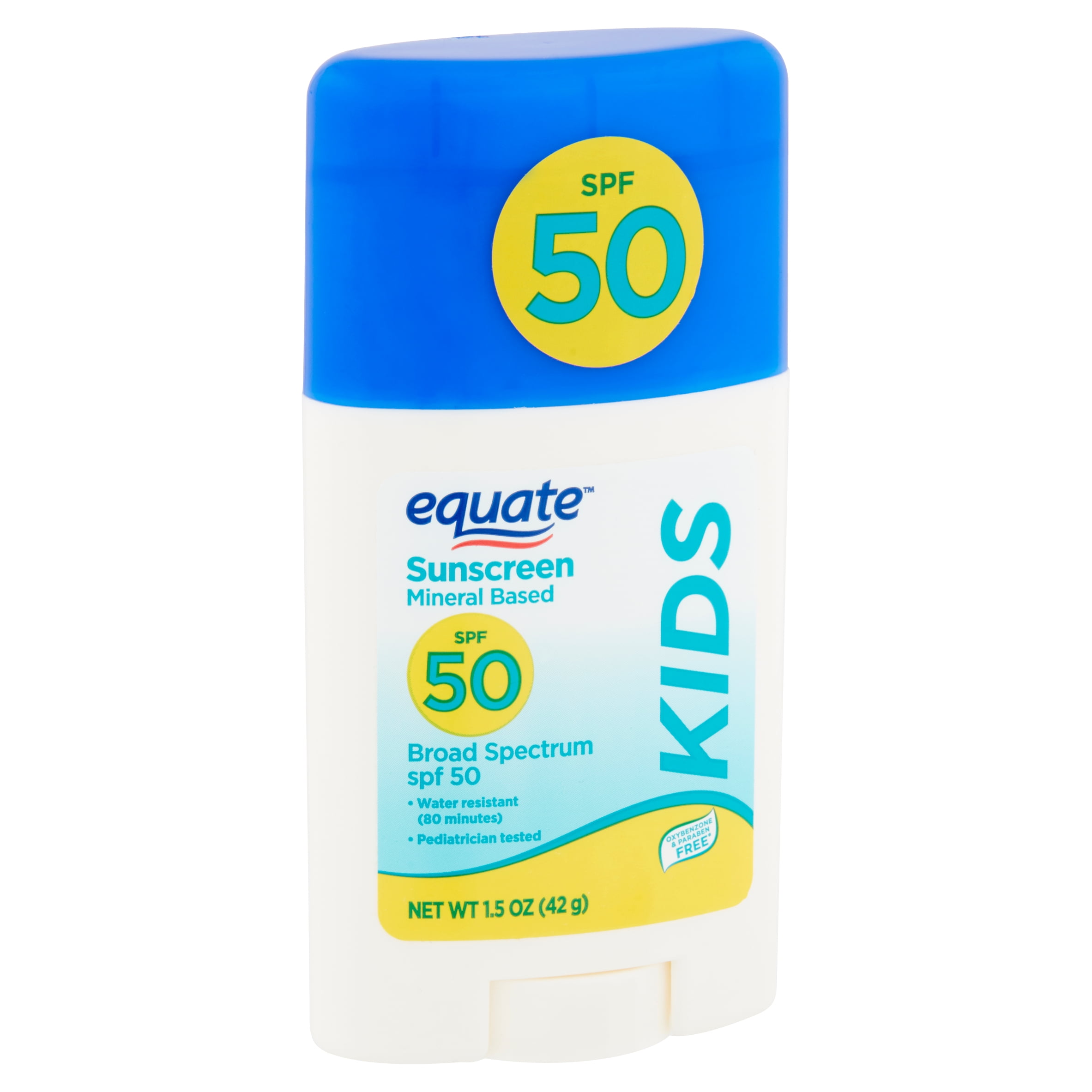 Equate Mineral-Based Sunscreen Stick SPF 50 glides on easily to provide broad spectrum UVA/UVB protection that protects kids’ sensitive skin. This non-greasy sunscreen goes on quickly without a sticky residue to keep active kids moving. This hypoallergenic formula helps you keep your kids’ skin safe while on the move.