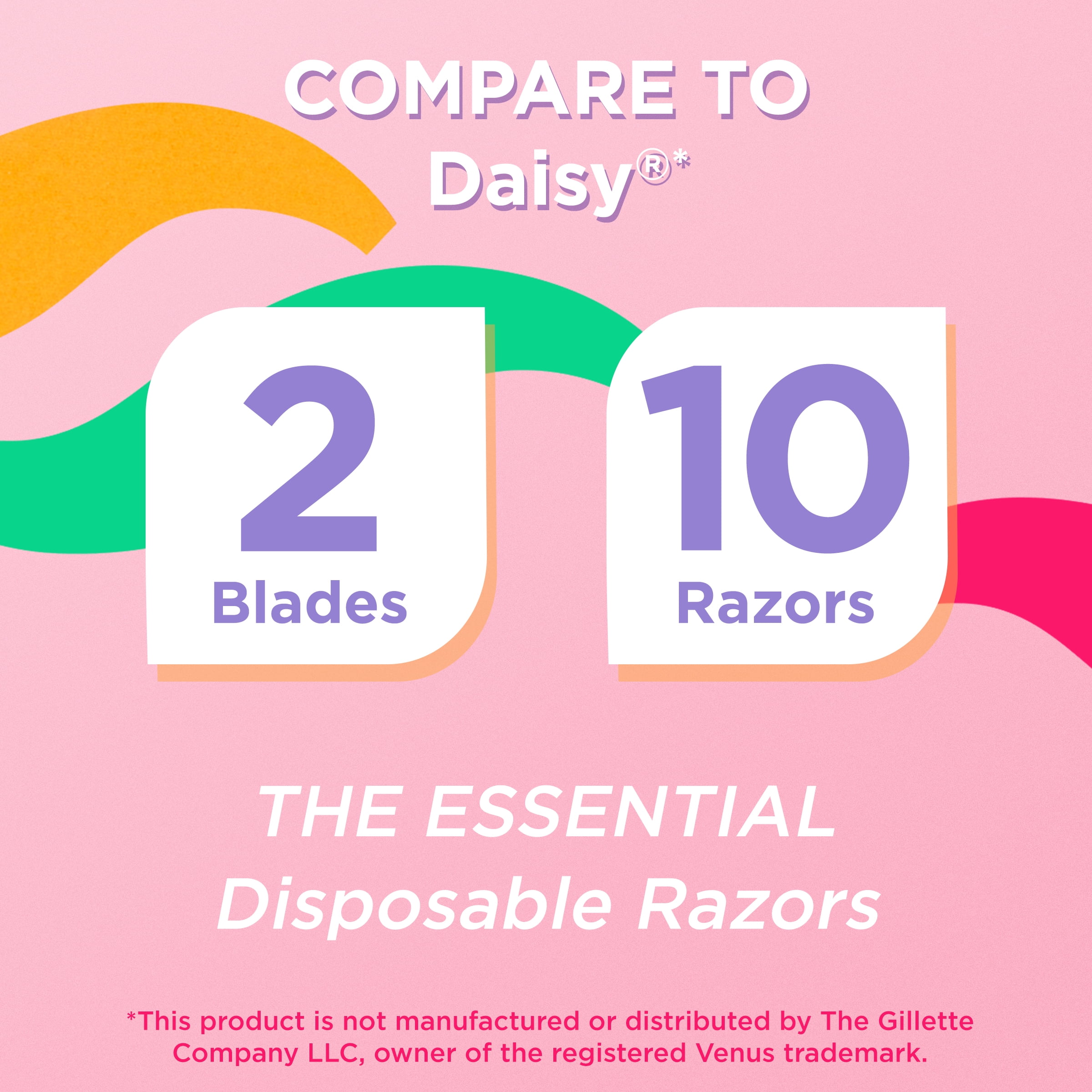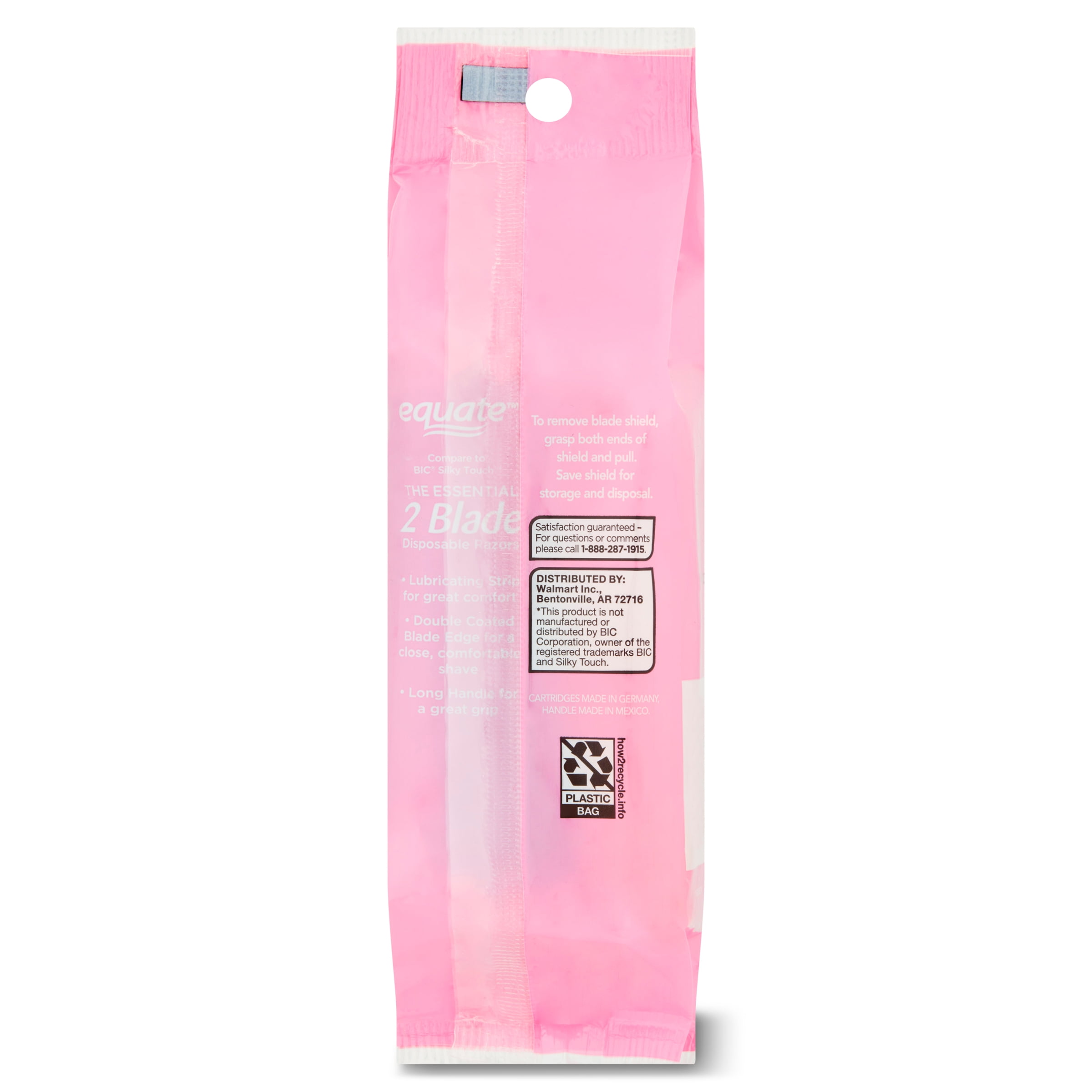 Equate 2 blade disposable razors are designed to give you a close, comfortable shave with great control. If you are looking for the right tools to achieve an impeccable, look no further than Equate the essential 2-blade disposable razors. This package contains 10 razors armed with lubricating strips for increased control, double-coated blades for a super close shave, and long handles for enhanced grip. The pink, purple, teal, and yellow color assortment allow you to easily distinguish your razors from others in your household and their disposable nature makes them the perfect addition to your travel bag. Look forward to your next shave with Equate the essential 2-blade disposable razors. Your family’s health is one of the most important priorities in your life. Walmart’s Equate brand is now the innovative leader in the health, beauty, and personal care marketplace and is outperforming and exceeding the quality standards of many national brands. The Equate brand has everything you need to keep your whole family feeling their best. Whether it’s pain relief medication for unexpected situations or superior, tested products for hair or skincare, Equate has you covered. With our everyday low prices, it’s easy to stock your bathroom cabinet with premium-quality essentials, even when you’re on a budget! For everything from vitamins and supplements, to first aid and feminine care products, you can confidently rely on the Walmart Equate brand to help you care for your family, every day.
