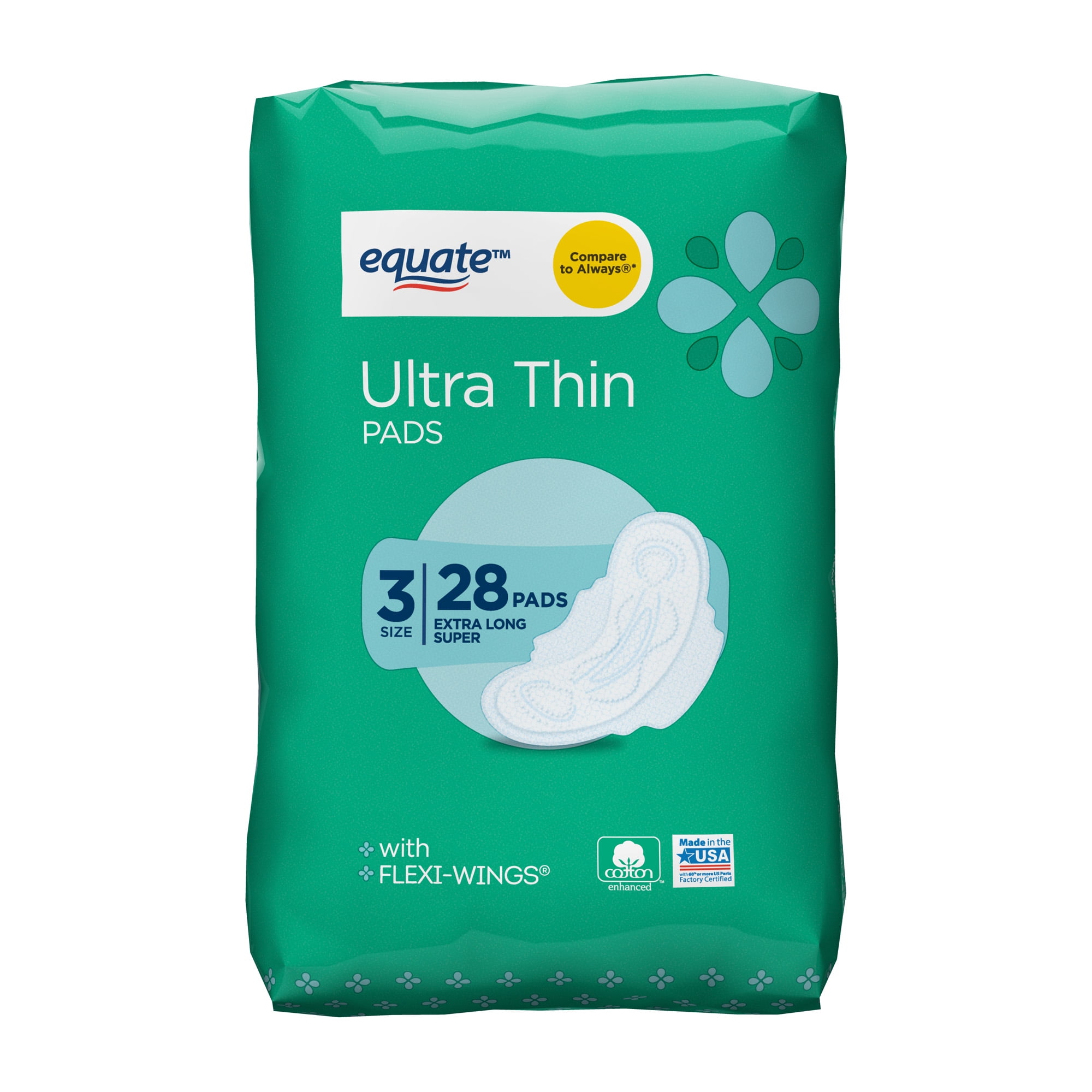 Equate Ultra Thin Pads with Wings, Extra Long, Super Unscented, 28 ct