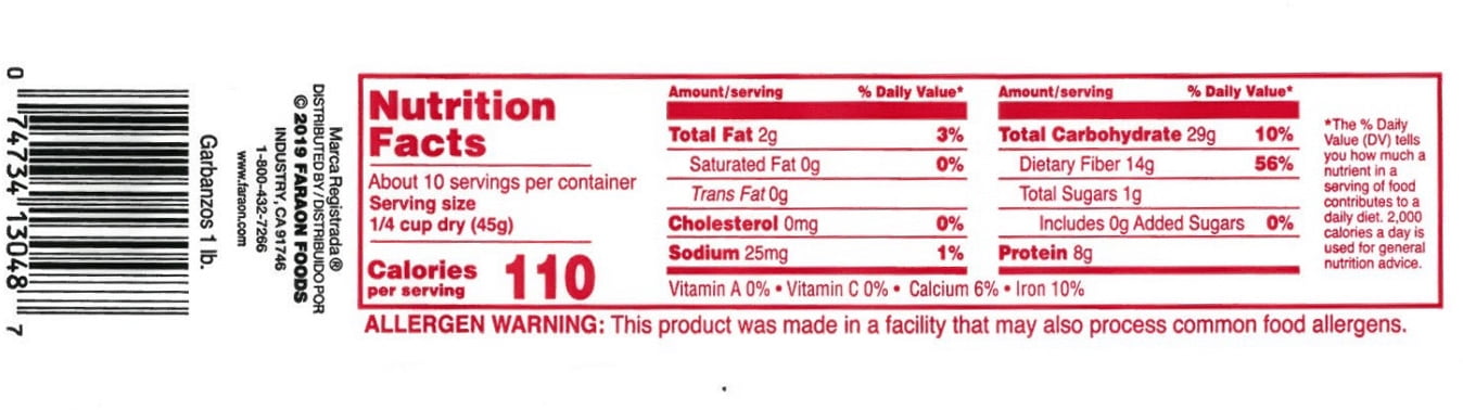 • Faraon Garbanzo Beans contain 0% saturated fat and 0 grams of trans fats.