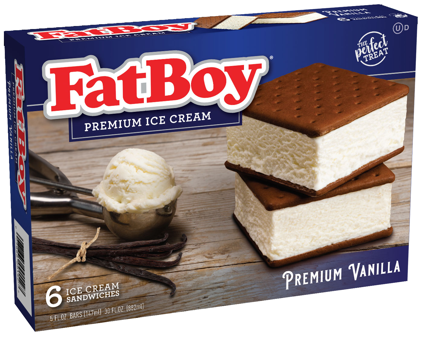 FatBoy Ice Cream Sandwich – Premium Vanilla, 6 ea