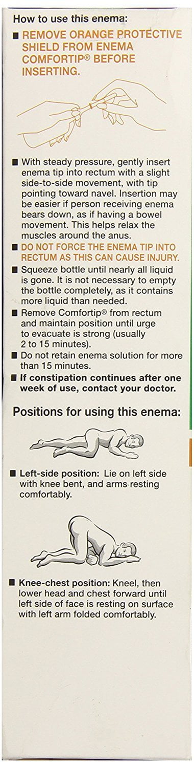 A less expensive option is to inject 50 ccs to 100 ccs of mineral oil or olive oil with an enema syringe. You can use a syringe, such as the Universal Tube Cleanser, to both measures and inject the oil. Do not force the liquid into the rectum. The Fleet Mineral Oil Enema enema should produce a bowel movement within 2 to 15 minutes after use. For best results, stay lying down until you feel the urge to have a bowel movement