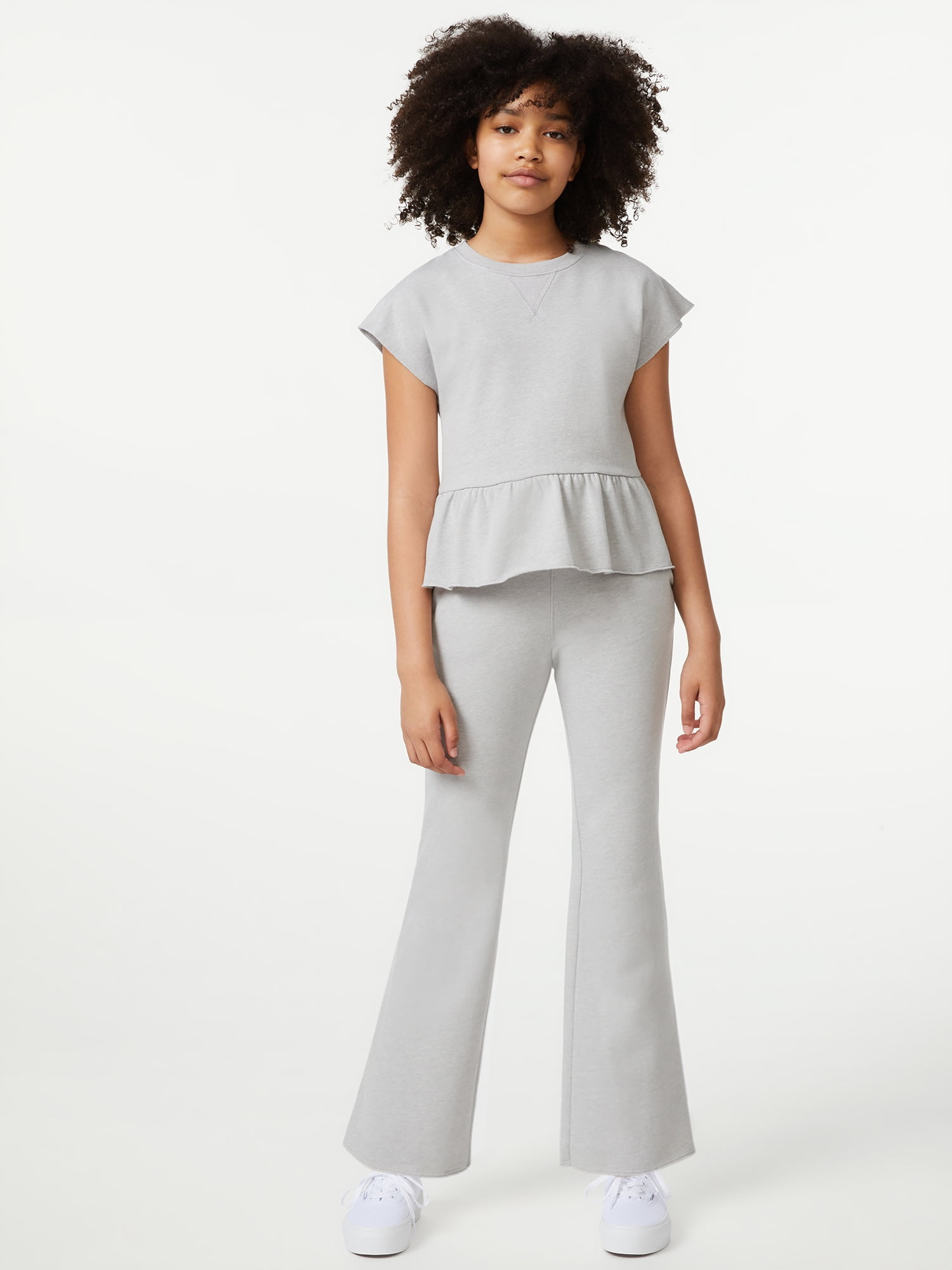 These Flare Sweatpants from Free Assembly will become a staple in her wardrobe in a soft cotton blend to keep her comfy at school or on the weekends. Pair with the matching Short Sleeve Peplum Sweatshirt for a pretty finish. Exclusively at Walmart.