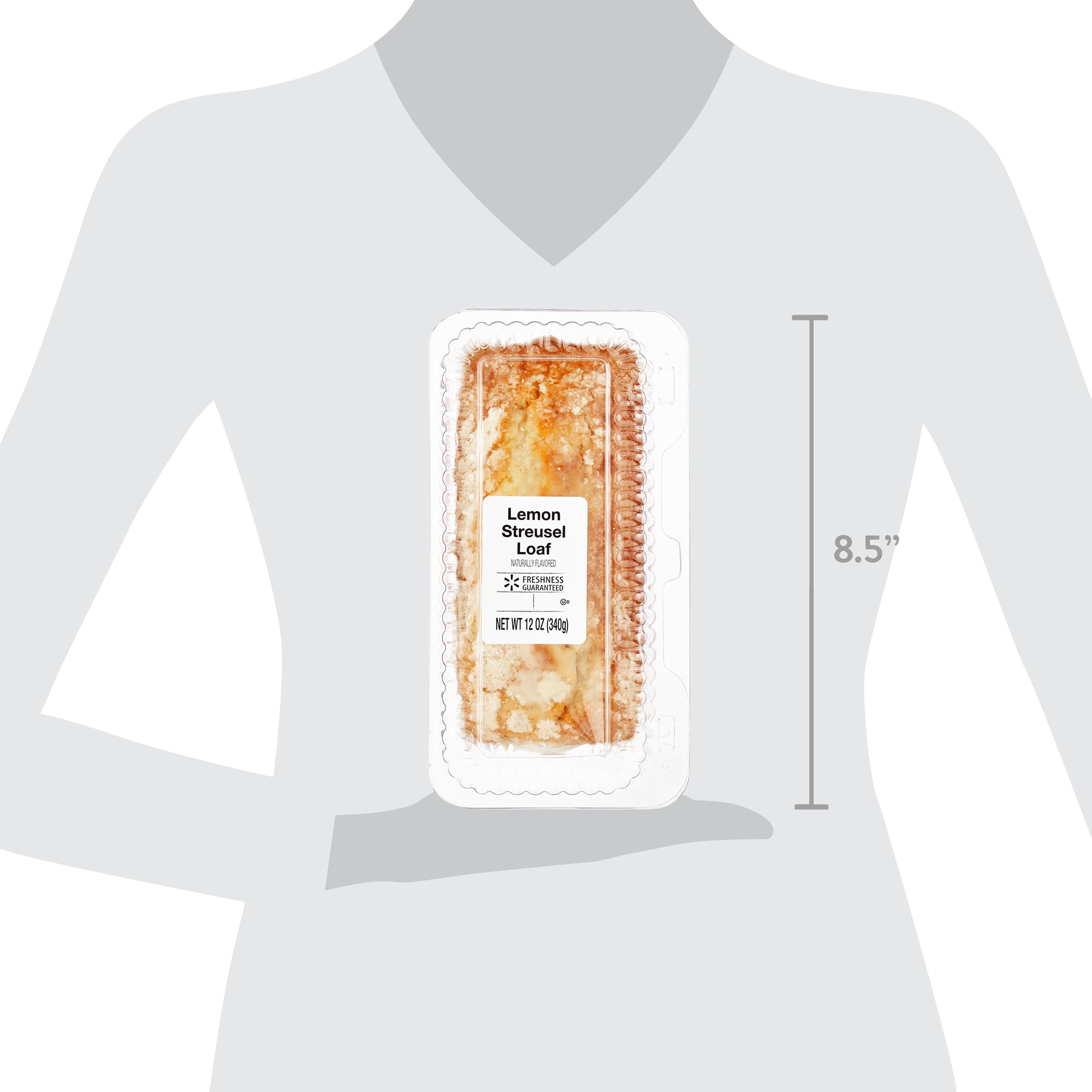 Try out our delicious Freshness Guaranteed Lemon Streusel Loaf for a refreshingly sweet treat! With a moist lemon cake that is perfectly paired with sweet streusel topping, this cake is the ultimate dessert to bring to a friend’s house, to share when you have guests over, to celebrate someone’s birthday, or just to enjoy on any given day. This decadent cake is sure to satisfy even the strongest sweet tooth and is ready to eat for your convenience. Be sure to try it alongside a glass of cold milk, a dollop of whipped cream, or a scoop of your favorite ice cream. Treat yourself to a bite of Freshness Guaranteed Lemon Streusel Loaf today!Freshness Guaranteed provides you and your family with high-quality fresh food that saves you time and money, many of which are cooked fresh or prepared in stores. Convenient solutions with value added in every Freshness Guaranteed item.Freshness Guaranteed Lemon Streusel Loaf, 12 oz: