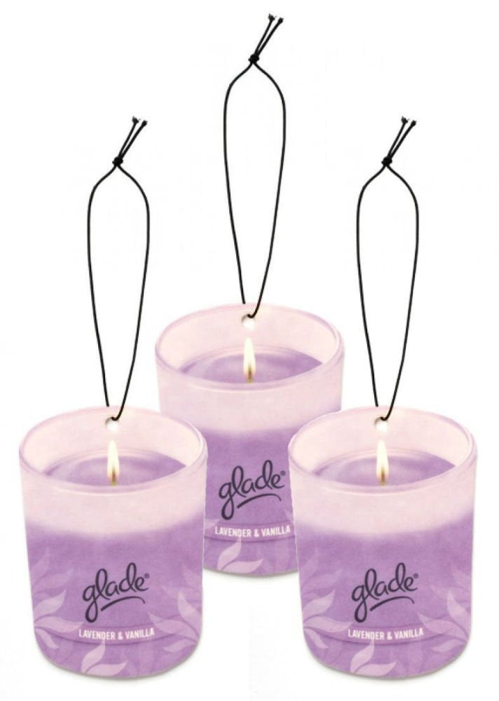 Glade Paper Candle Hanging Car and Home Air Freshener, Lavender & Vanilla 3-PACK