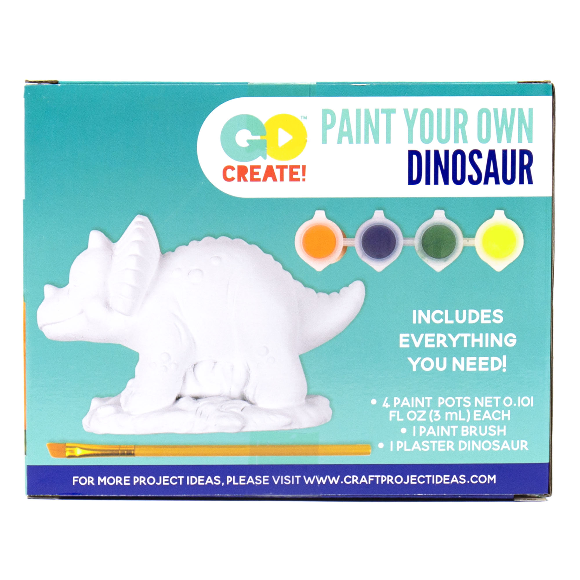 Use bold paint colors to Paint your own Ceramic Dinosaur! Personalize your dinosaur with the vivid paint colors included or get creative and mix paints to create new hues. Reflect your personal style as you make unique details that make your dinosaur stand out! Add embellishments like glitter adn wiggly eyes to bring your creation to life. Great for enhancing your room decor. For indoor display only. Recommended for ages 6 and up.