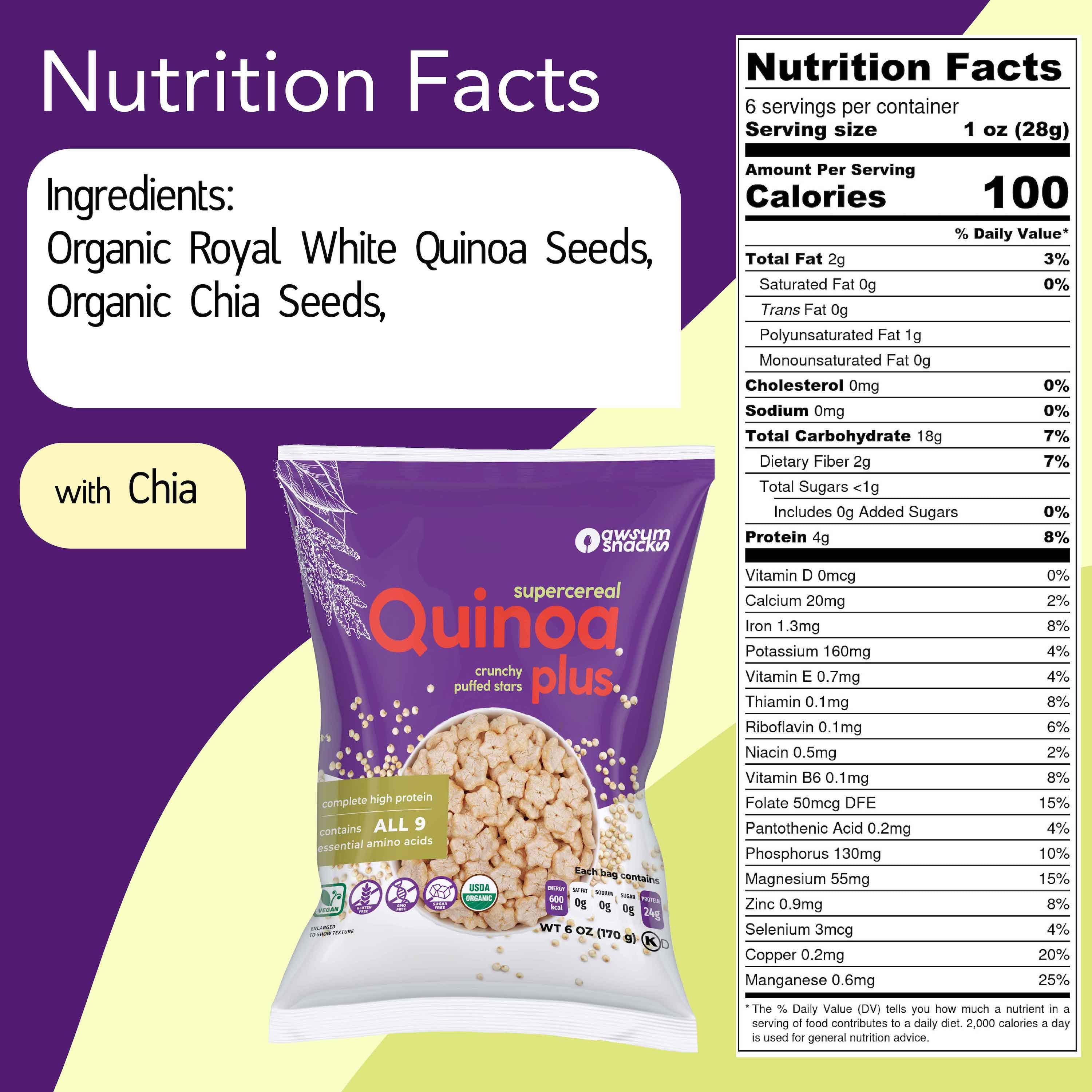 - WHOLE GRAIN: At least 13g whole grain per serving (At least 48g recommended daily).