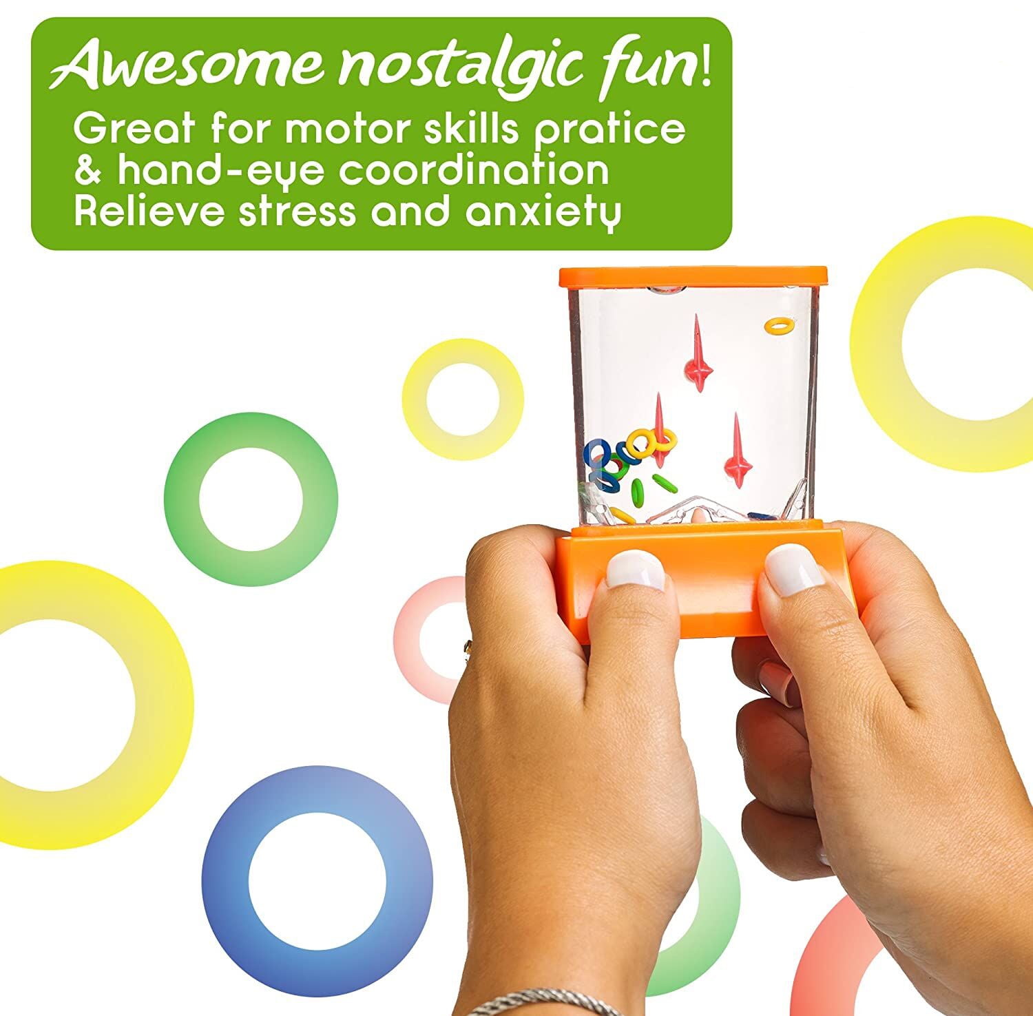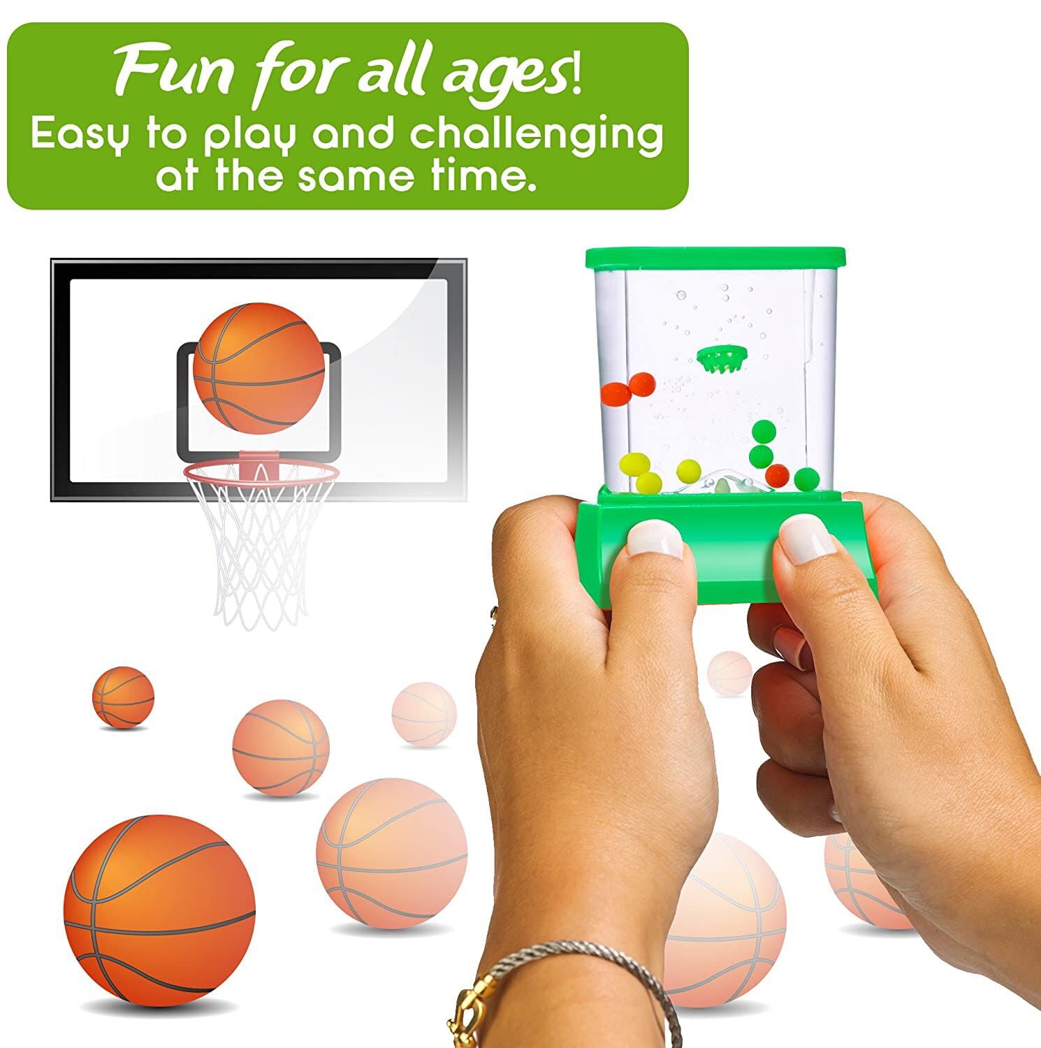 GREAT WAY TO RELIEVE YOUR STRESS: The Handheld Water Game is not only fun, but it can also be very useful in cases of stress and anxiety. Whenever you feel your stress taking the best of you, don’t panic. Instead, start playing with the Fish Toss or the Basketball Water Game. It is a great way to relieve your stress and calm down. So if you tend to get stressed, a Water Game is what you need!