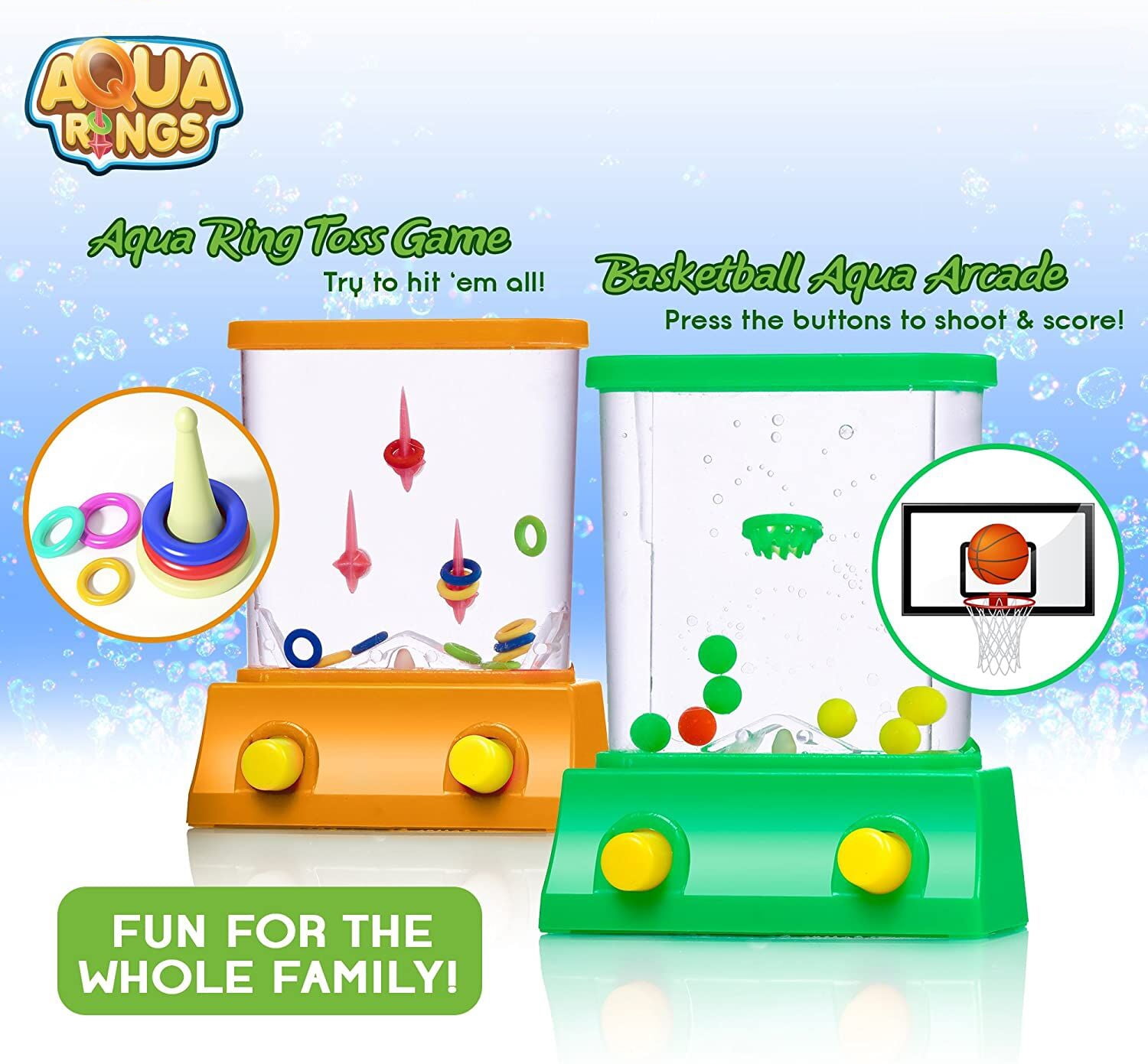 2 DIFFERENT WATER GAMES: Did you grow up playing the Fish Ring Toss Game or the Basketball one? Well, now you can play both. Miss your 90s toys? This pack consists of both these games to make you feel more nostalgic than ever. And since the Water Games will be 2, you can share them and play or compete with a friend. You can even teach your kids how to play this Game that was part of your childhood.