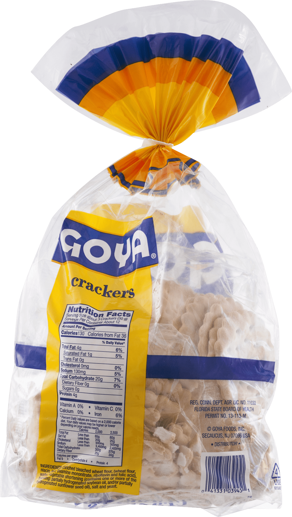 Goya crackers are a delicious and authentic Latino snack that may be enjoyed anytime the mood strikes. With a compact size, they are an ideal option for curbing your hunger between meals. These simply made snacks are an optimal accompaniment for your soups. The kosher crackers can make a tasty kids snack or a tasty and crunchy bite for yourself. They come in a recyclable bag for your convenience. With a handy 12 oz size, you get enough to enjoy with a friend, too. They may easily be stored in your pantry until you are ready for a snack. With a healthy blend of ingredients, they make a good choice for filling up, serving on the side or tiding you over until your next meal.