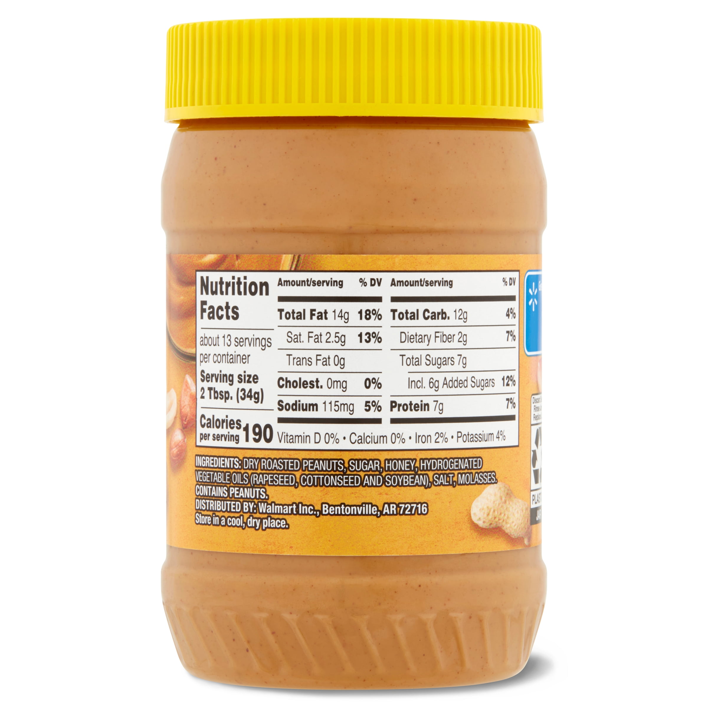 - Contains twelve (12) 16-ounce jars GREAT VALUE Honey Roasted Creamy Peanut Butter