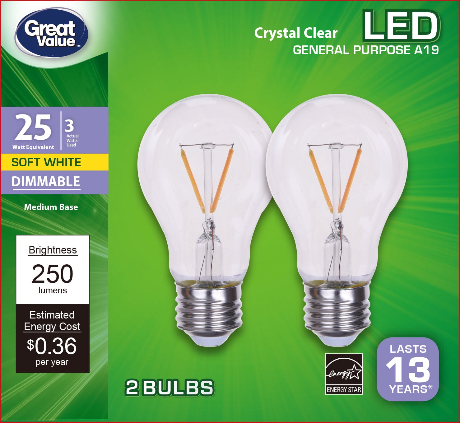 Tags: Crystal Clear, E26, General Purpose, General Purpose Bulb, Great Value, Great Value Crystal, Purpose Bulb, Soft White, Value Crystal, Value Crystal Clear