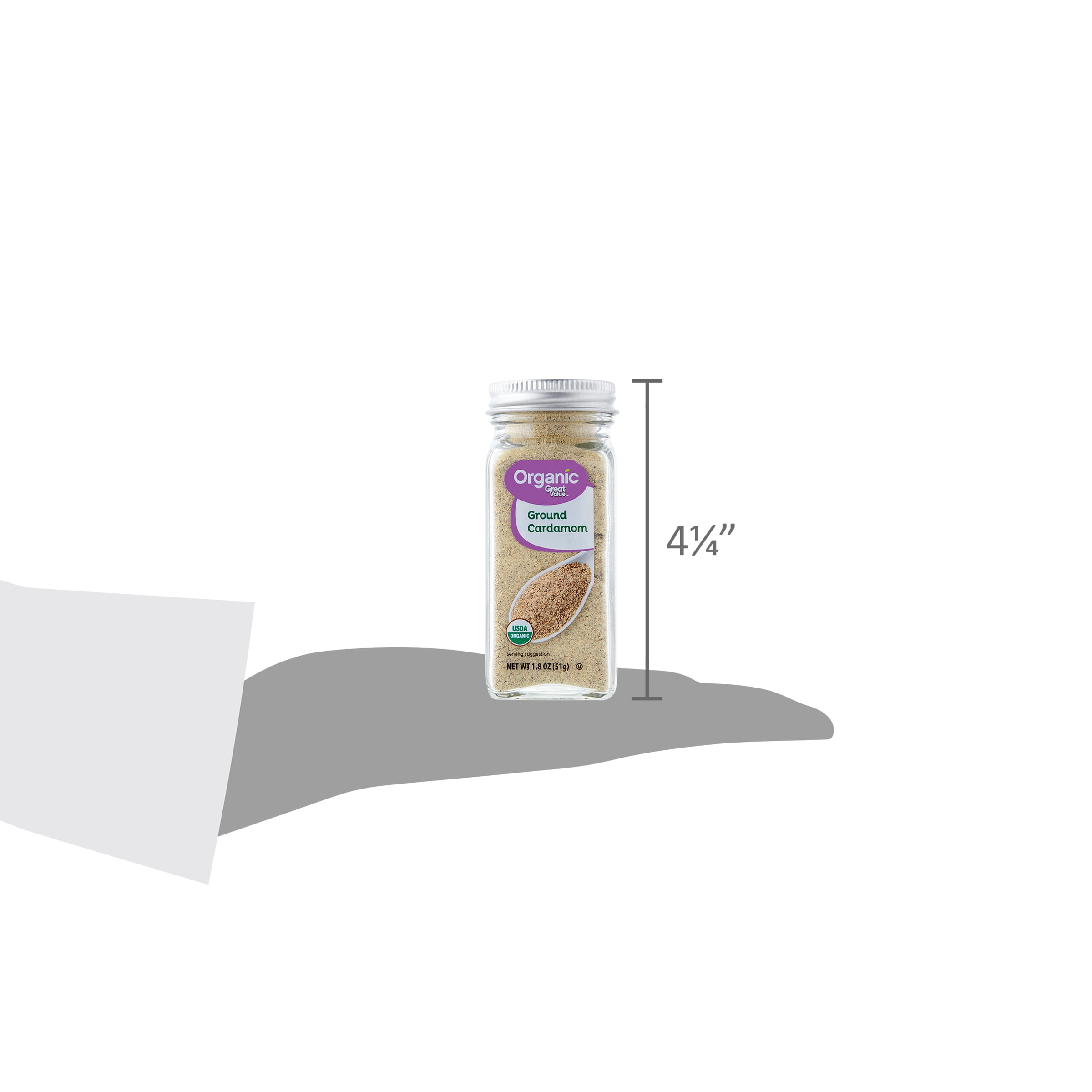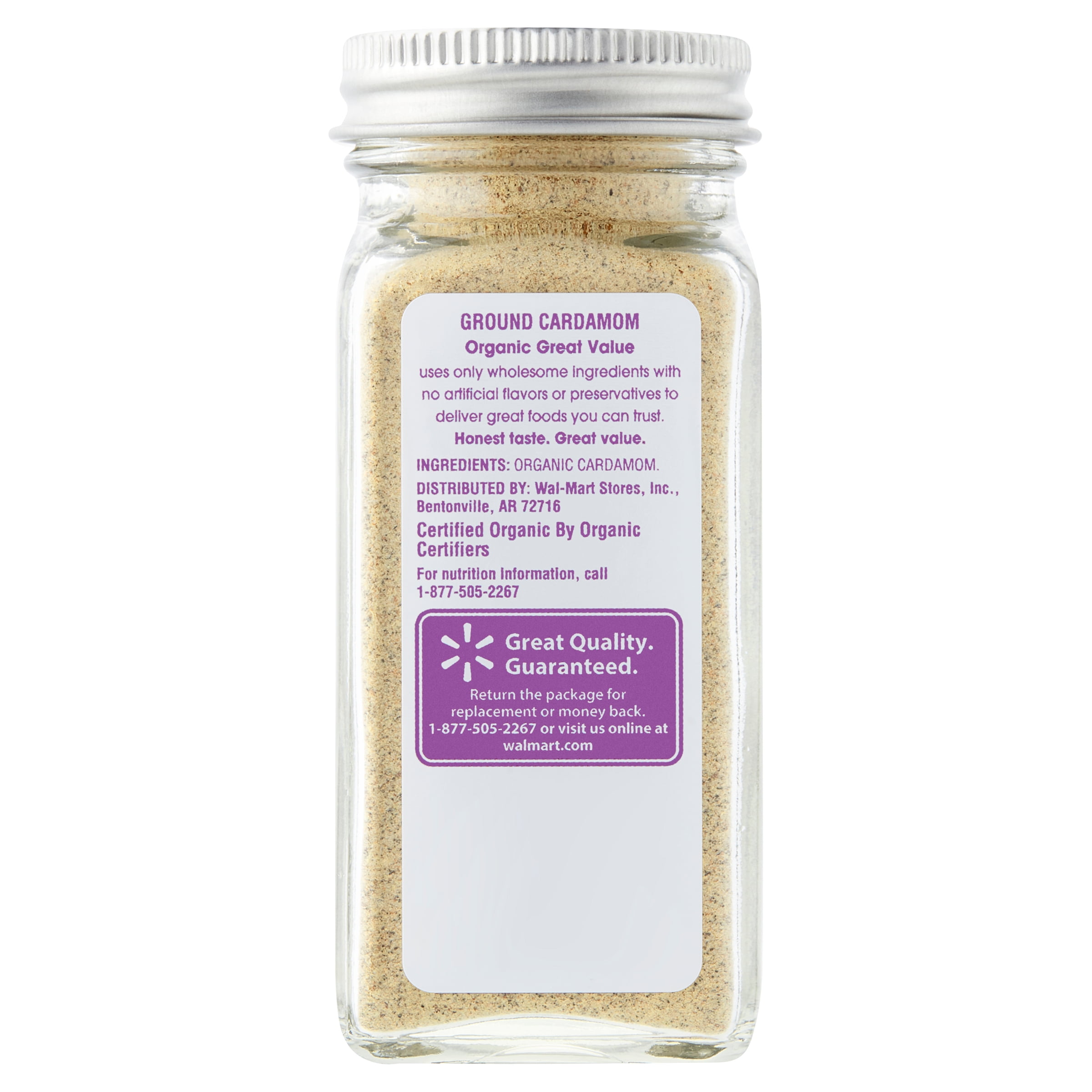 Great Value Organic Ground Cardamom adds a fantastic aroma and flavor to many types of cuisine. Cardamom is citrusy, spicy, and herbal, and plays well with other spices like cinnamon, nutmeg, allspice, and ginger. Whip up a maple-cardamom glaze for salmon, or bring stews and curries to life with this completely unique, spicy-sweet flavor. Use it as part of a spice rub for chicken or pork, or add it to sweet creations like carrot cake, pumpkin pie, or ginger cookies. Our certified organic spices are made from only wholesome ingredients with no artificial flavors or preservatives to deliver great foods you can trust. Pick up Great Value Organic Ground Cardamom and get creative in the kitchen!